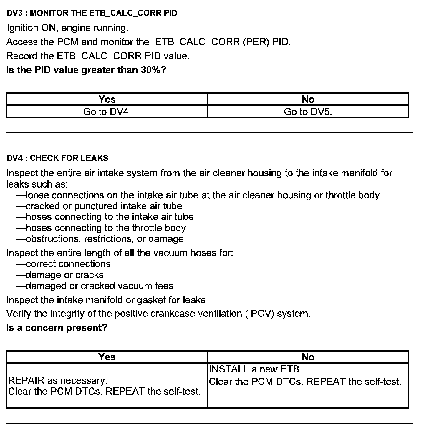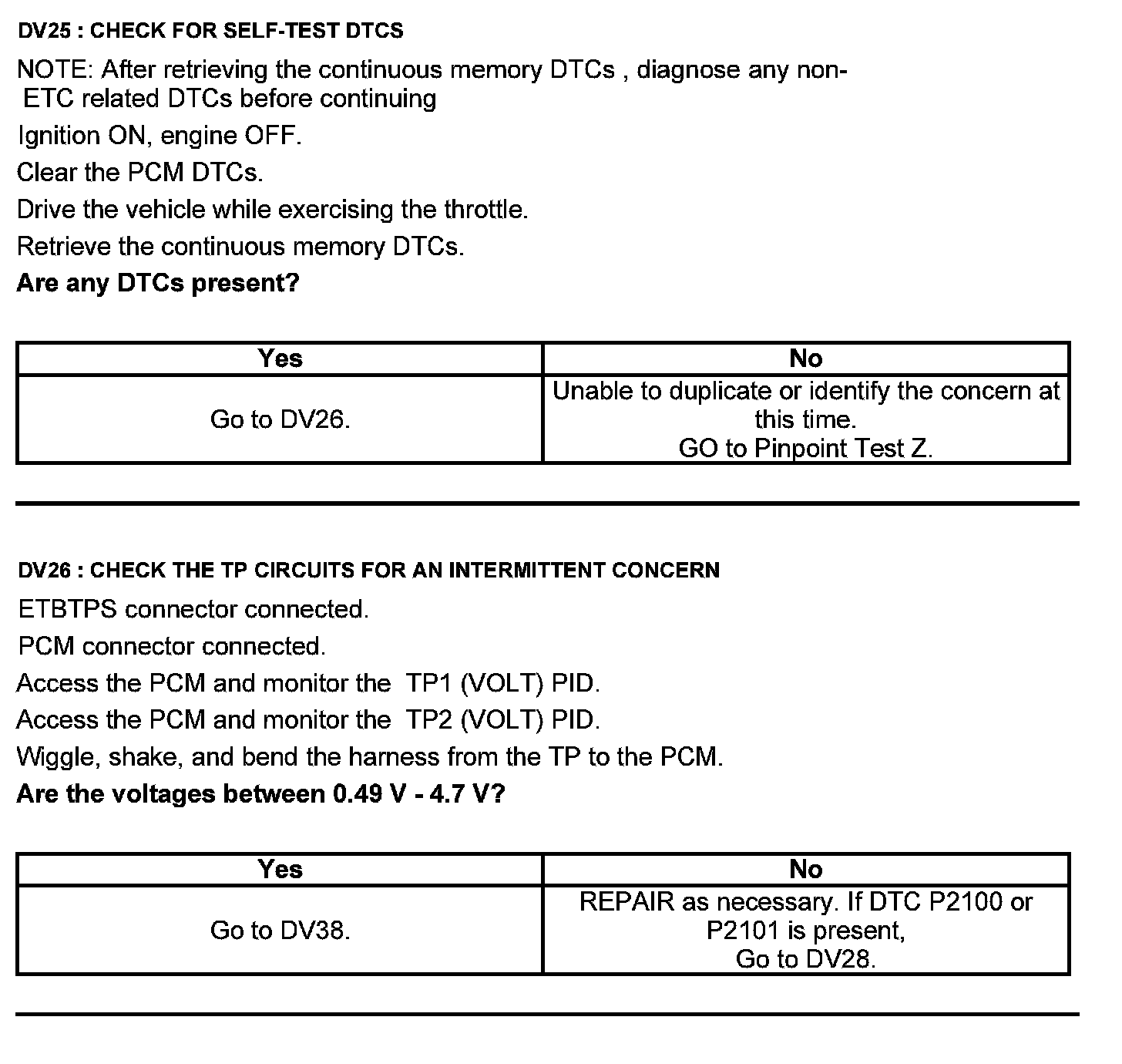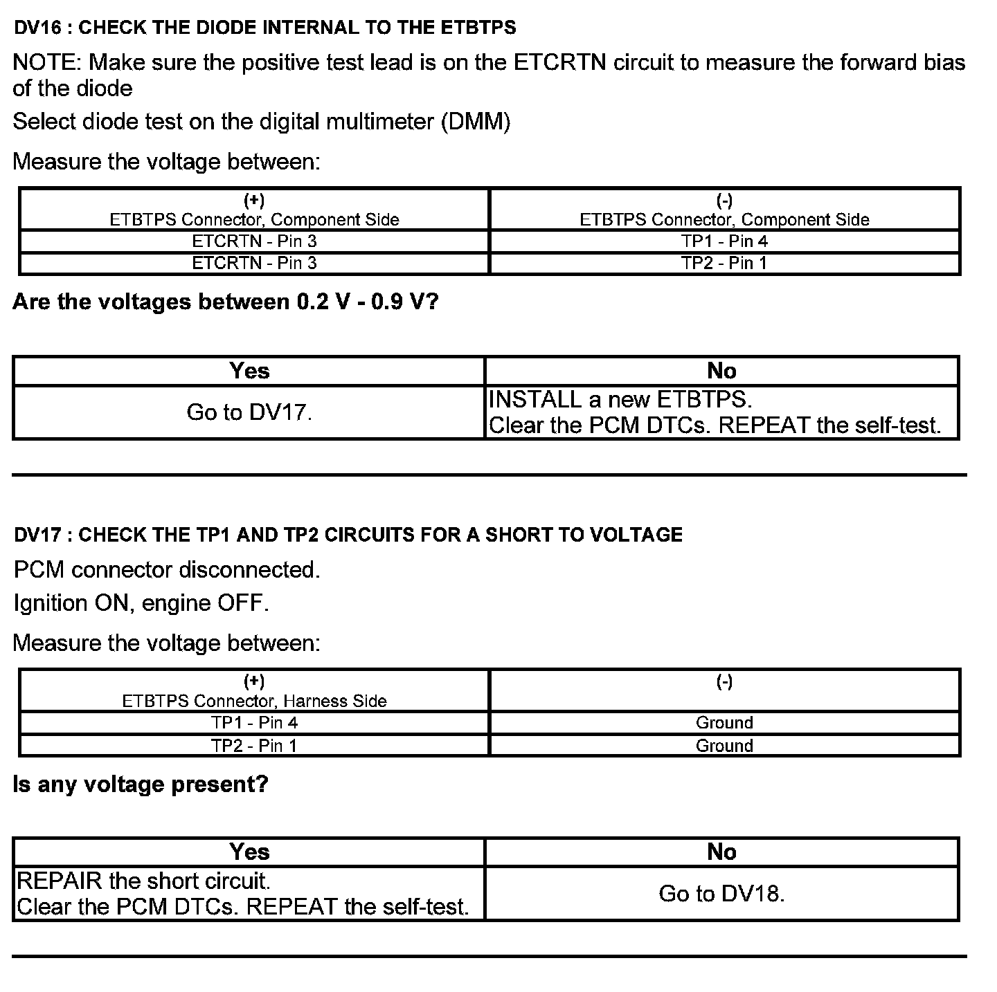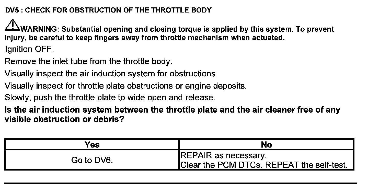 Home >> Ford >> 2012 >> Explorer AWD V6-3.5L >> Repair and Diagnosis >> Powertrain Management >> Computers and Control Systems >> Testing and Inspection >> Pinpoint Tests >> Test DV: Throttle Body Assembly Electronic Throttle Control (ETC)