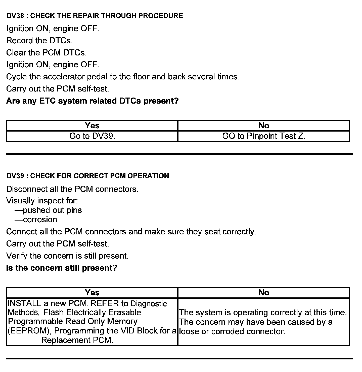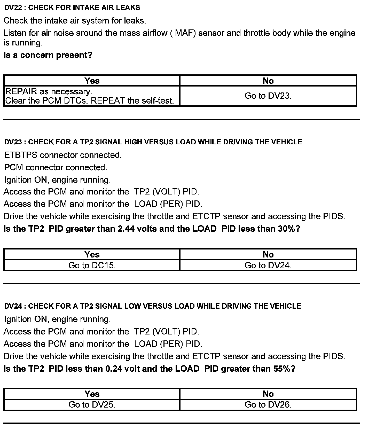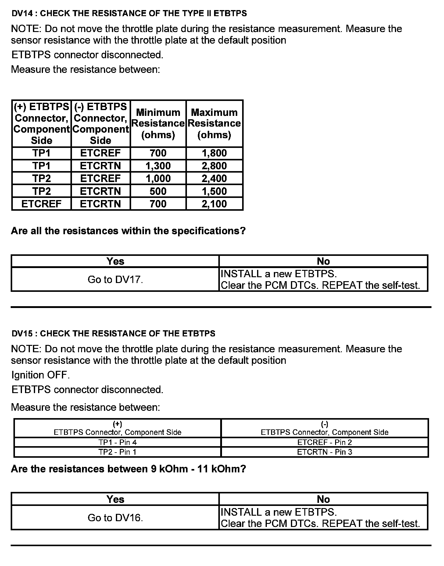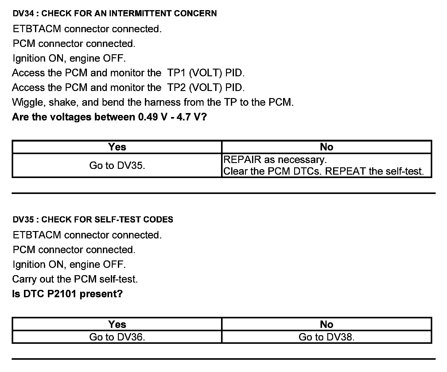 Home >> Ford >> 2012 >> Explorer AWD V6-3.5L >> Repair and Diagnosis >> Powertrain Management >> Computers and Control Systems >> Testing and Inspection >> Pinpoint Tests >> Test DV: Throttle Body Assembly Electronic Throttle Control (ETC)