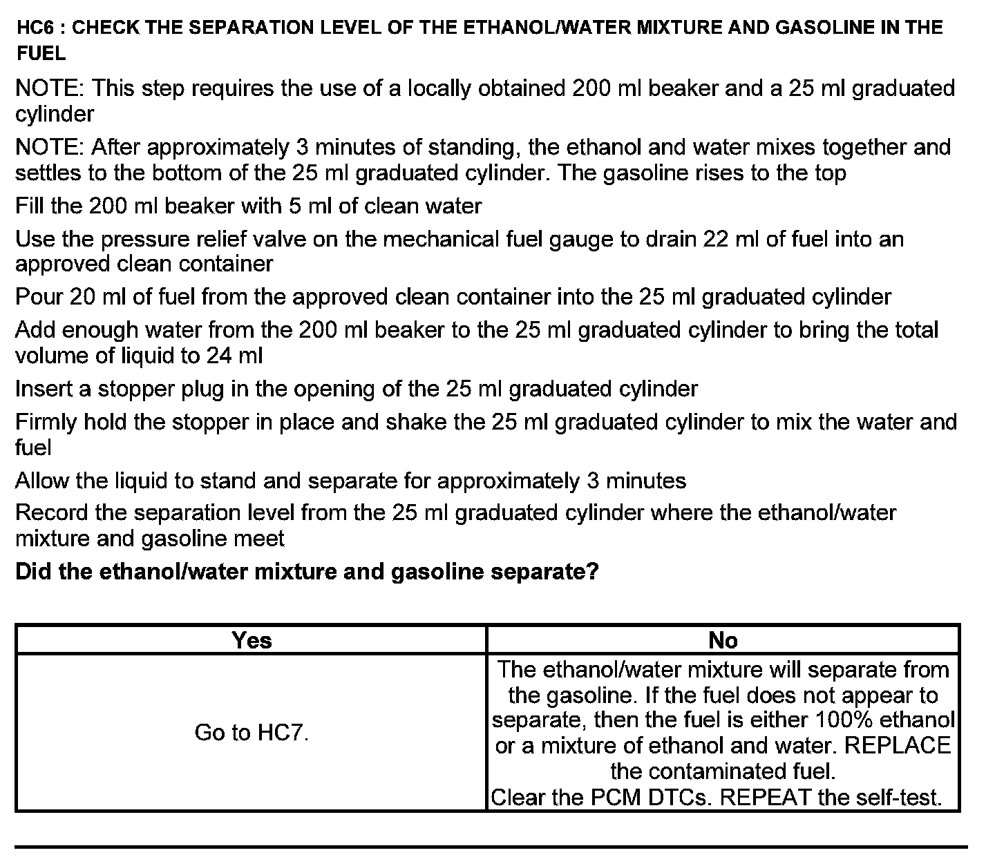 Test HC: Fuel Delivery System