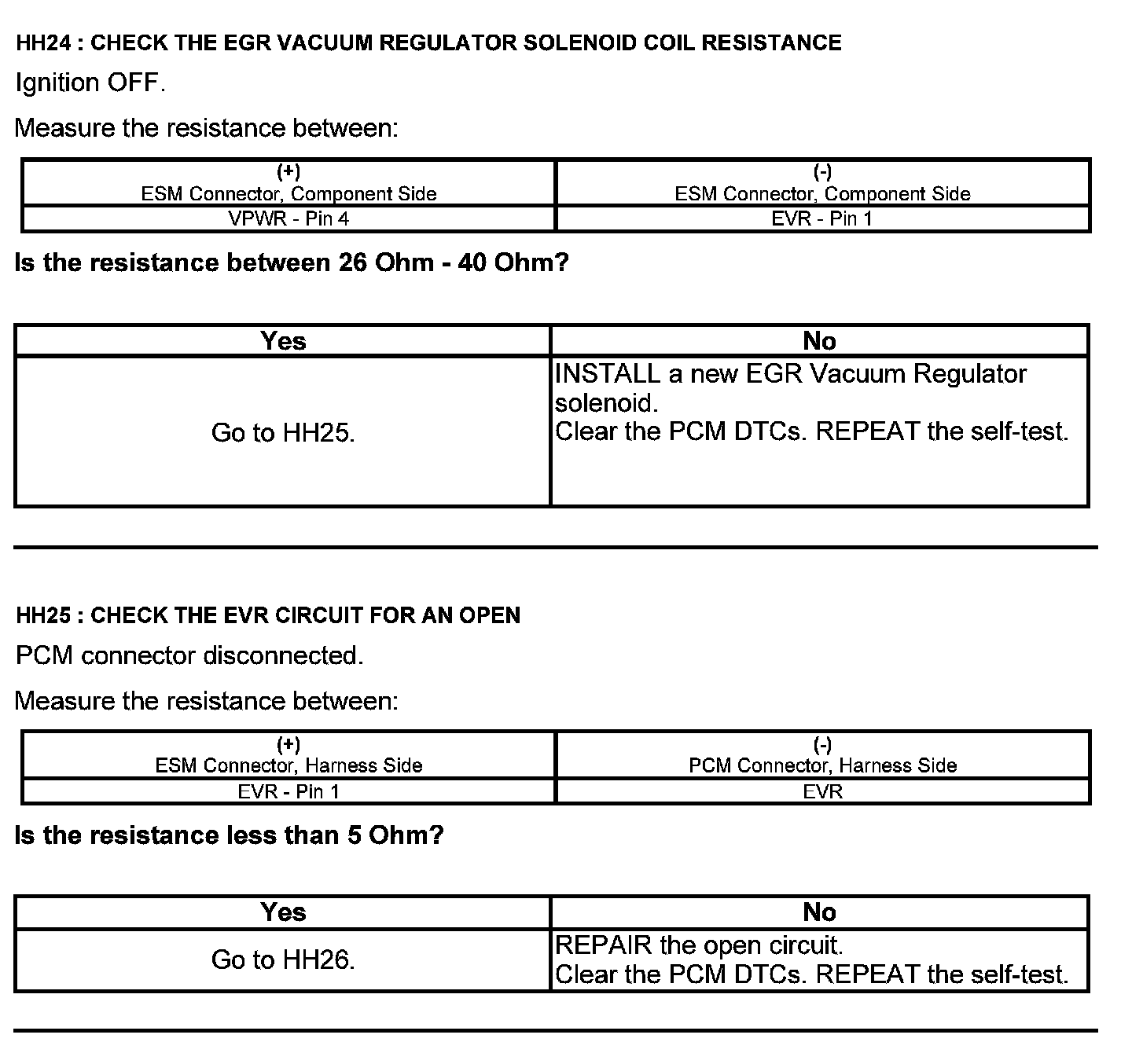 Home >> Ford >> 2012 >> Explorer AWD V6-3.5L >> Repair and Diagnosis >> Powertrain Management >> Computers and Control Systems >> Testing and Inspection >> Pinpoint Tests >> Test HH: Exhaust Gas Recirculation System Module (ESM)