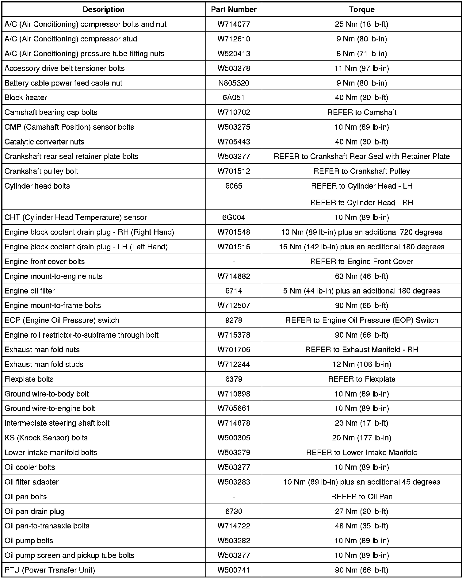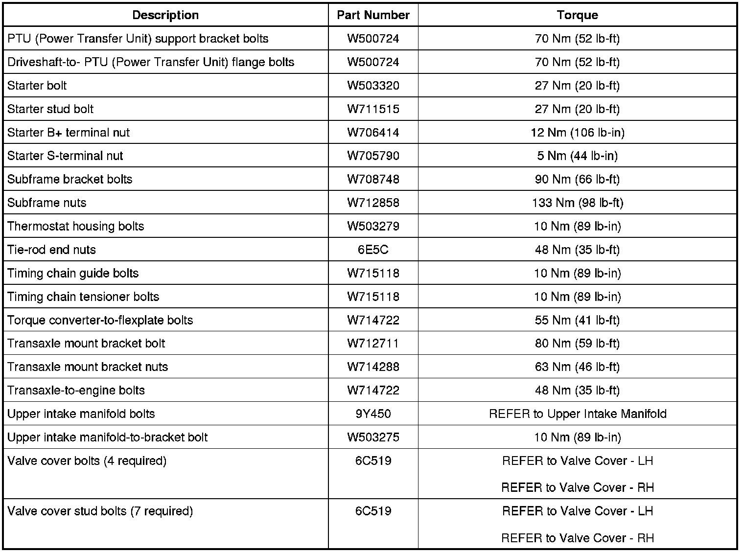 Torque Specifications
