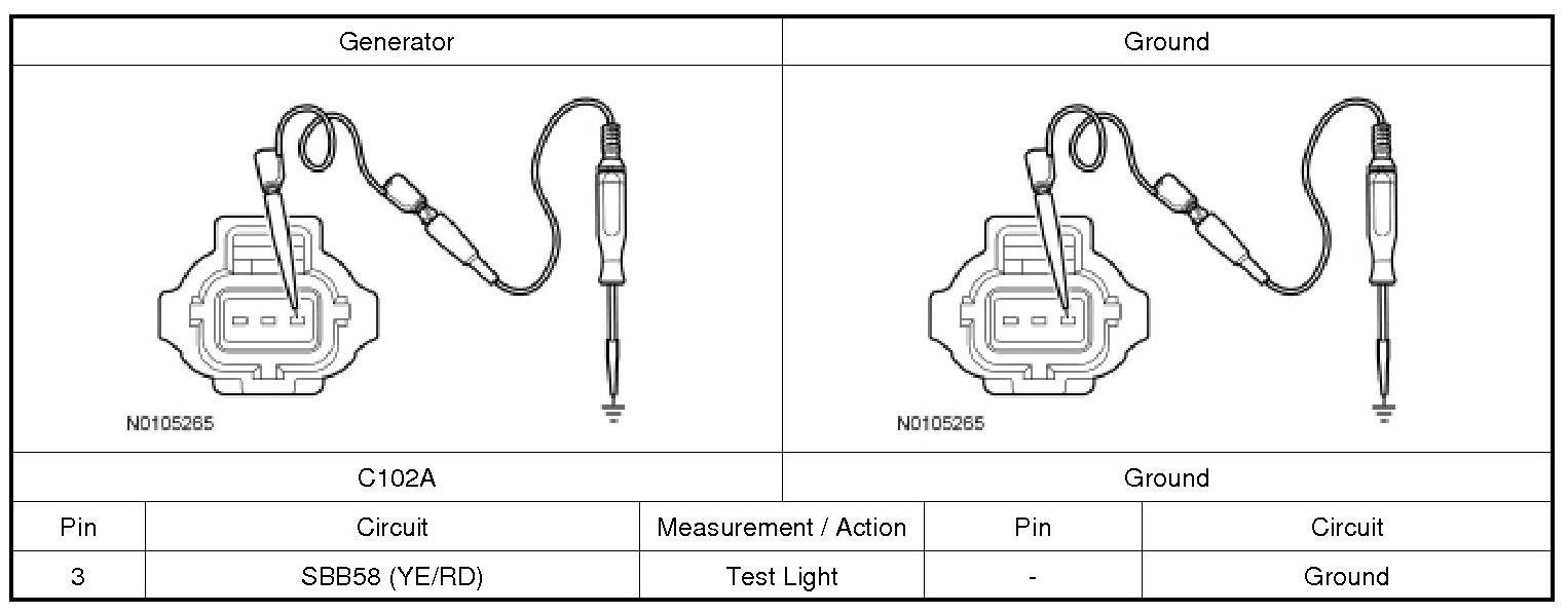 NOTE: This step puts a load on the "A" sense circuit. If there are corroded or loose connections, loading the circuit may help show the fault. A 250-350 mA incandescent 12-volt test lamp is required for this step. This circuit cannot be loaded correctly using an LED (Light-emitting Diode)-style test lamp.