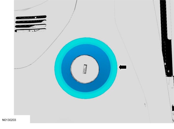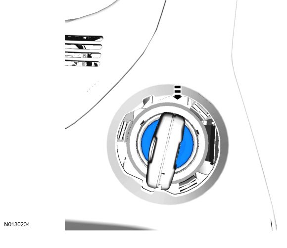 1. Using a 90° pick tool, press the ignition lock cylinder release pin on the topside of the ignition lock cylinder housing, while pulling the ignition key outward.