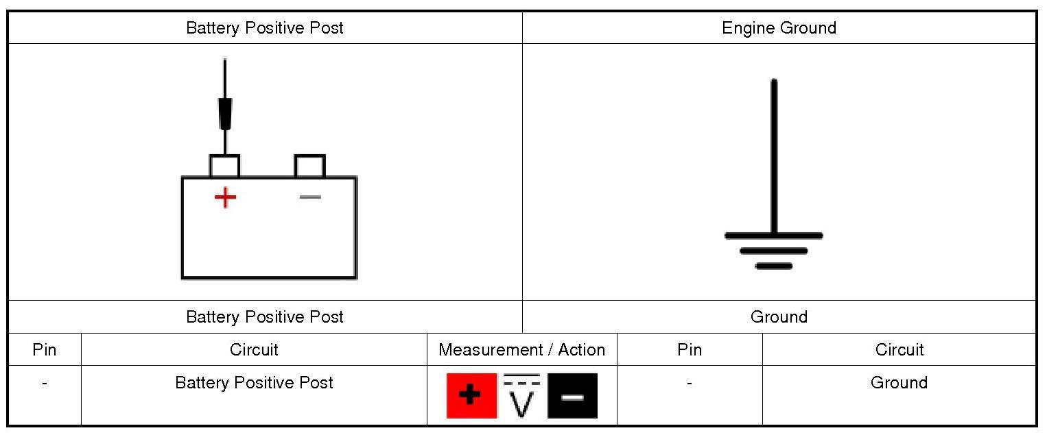 3. With the gear selector in PARK, while holding the key in the START position, measure: