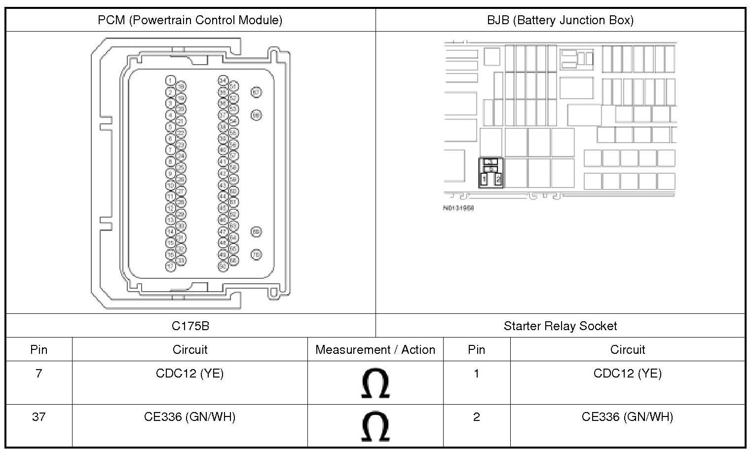 19. CHECK THE PCM (Powertrain Control Module) START CIRCUITS FOR A SHORT TO GROUND