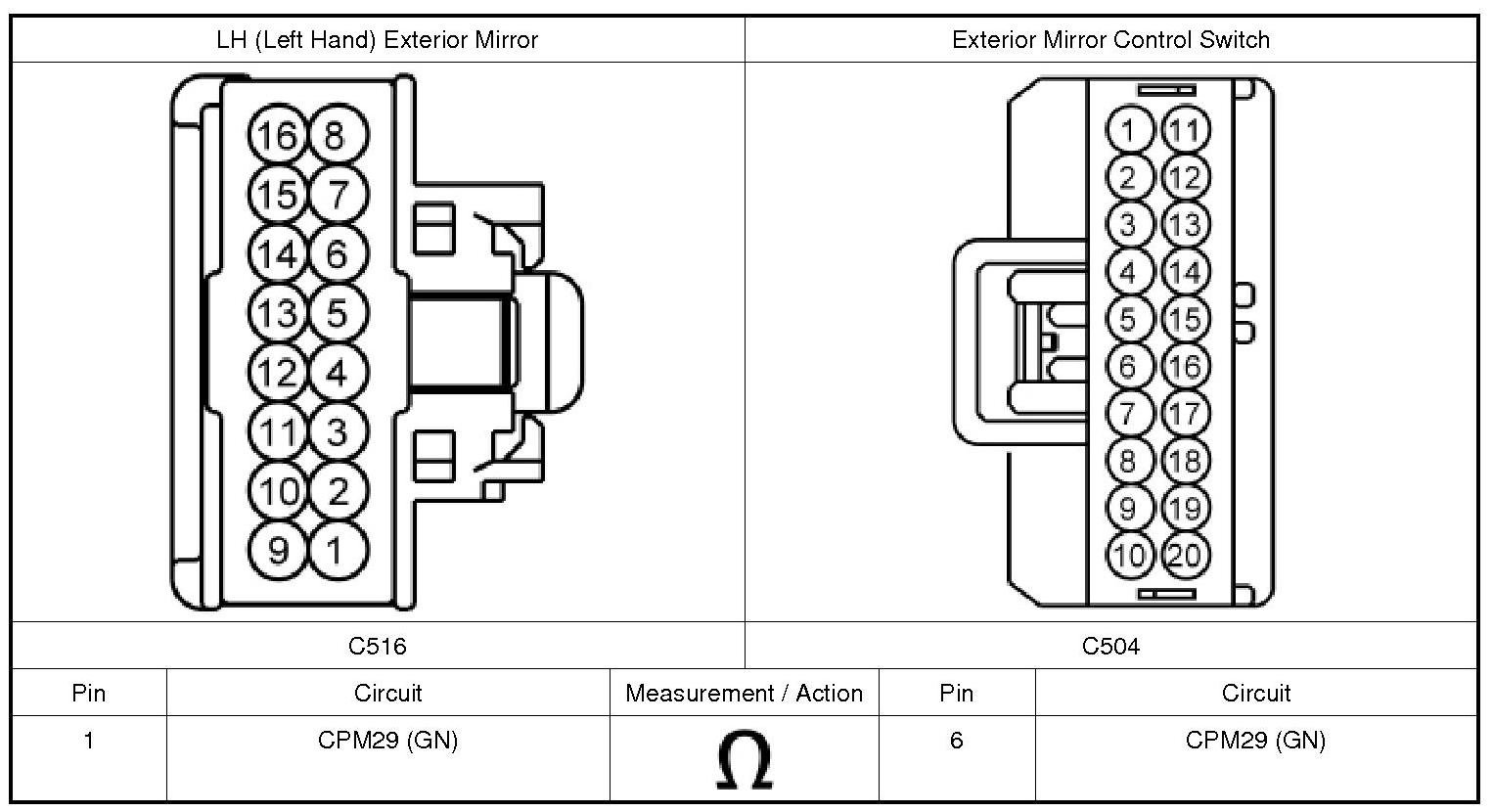 3. Disconnect: Exterior Mirror Control Switch C504 (heated mirrors).