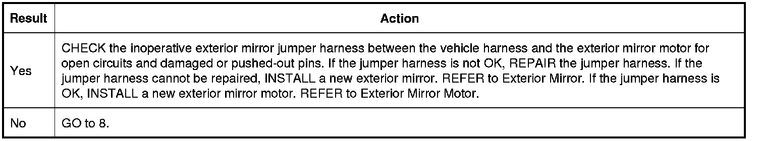 2. Disconnect: Incorrectly Operating RH (Right Hand) Exterior Mirror or LH (Left Hand) Exterior Mirror.