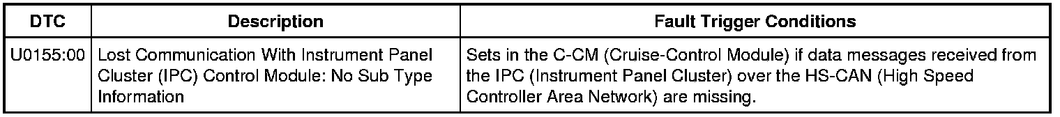 3. RETRIEVE THE RECORDED DTCs (Diagnostic Trouble Codes) FROM THE C-CM (Cruise-Control Module) AND THE IPC (Instrument Panel Cluster) SELF-TESTS