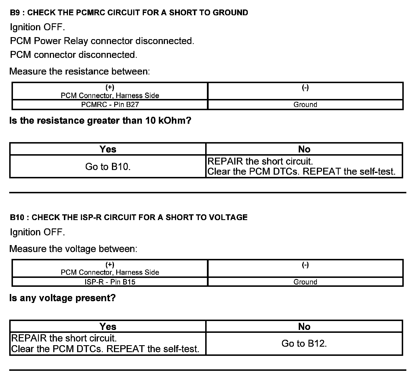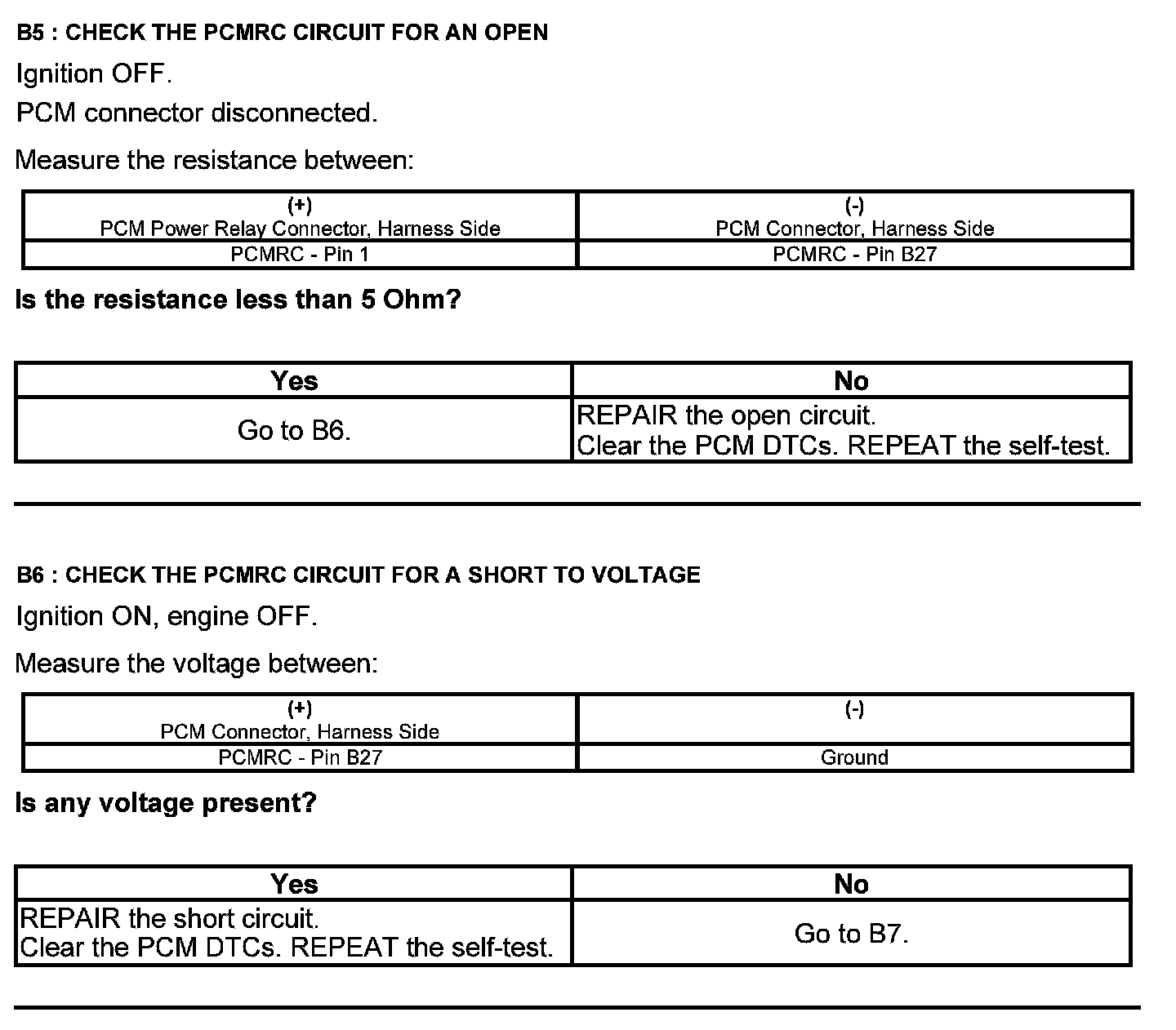 Test B: Powertrain Control Module (PCM) Power Relay