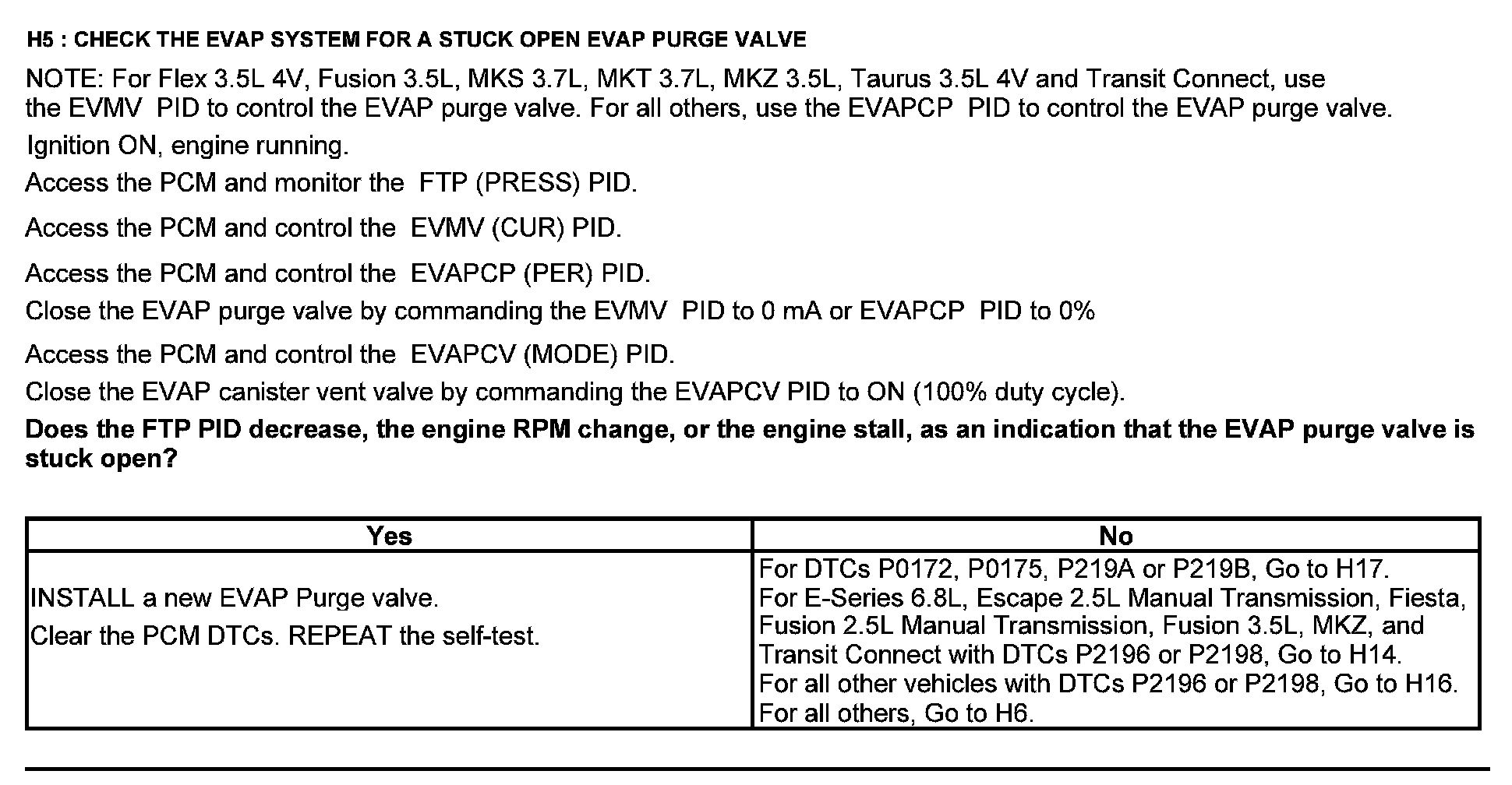 Home >> Ford >> 2012 >> Explorer FWD L4-2.0L Turbo >> Repair and Diagnosis >> Powertrain Management >> Computers and Control Systems >> Testing and Inspection >> Pinpoint Tests >> Test H: Fuel Control