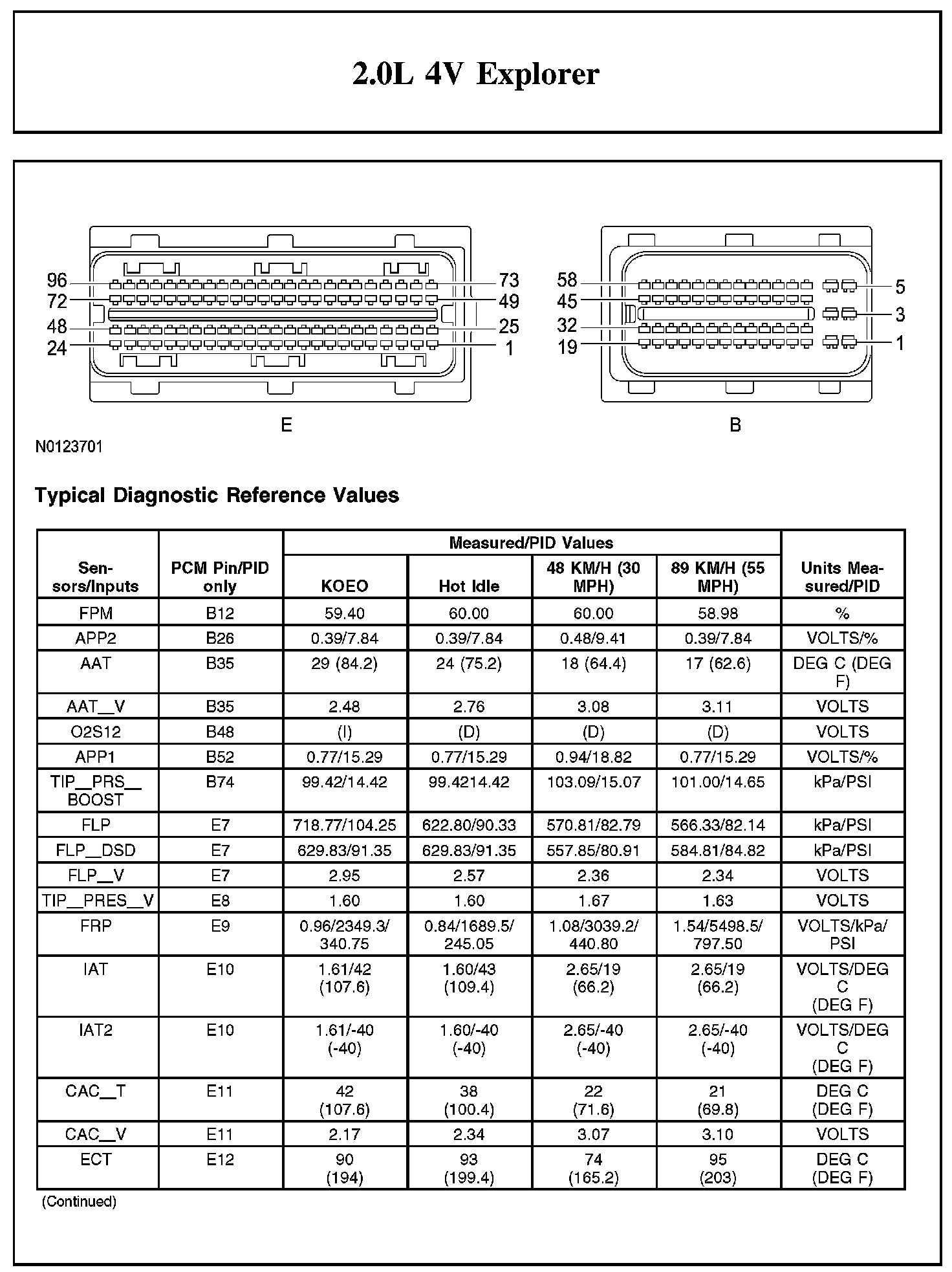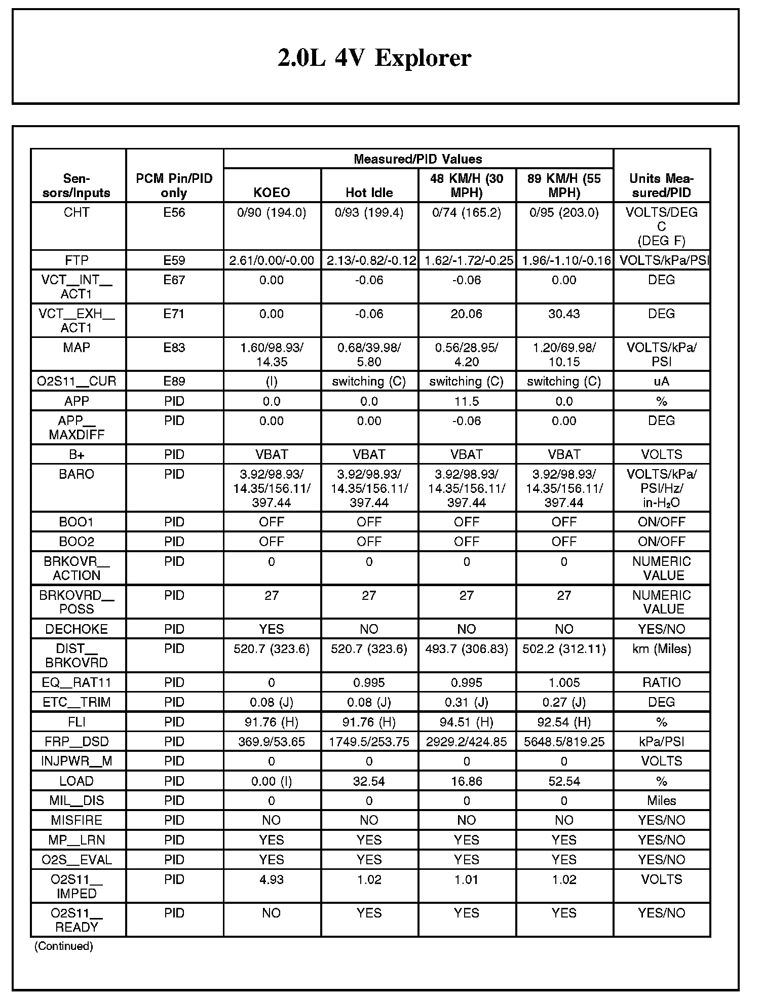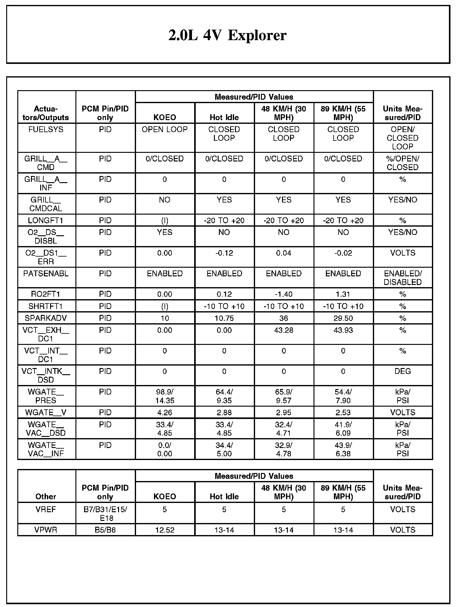 Home >> Ford >> 2012 >> Explorer FWD L4-2.0L Turbo >> Repair and Diagnosis >> Powertrain Management >> Computers and Control Systems >> Testing and Inspection >> Scan Tool Testing and Procedures >> Typical Diagnostic Reference Values