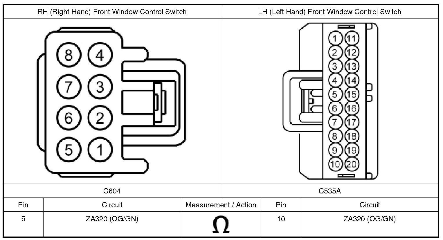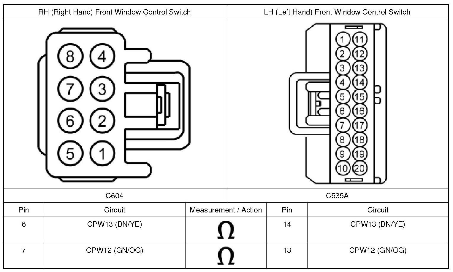 2. Disconnect: LH (Left Hand) Front Window Control Switch C535A.
