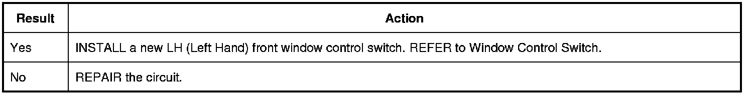2. For LH (Left Hand) rear window, while pressing and releasing the LH (Left Hand) front window control switch, measure: