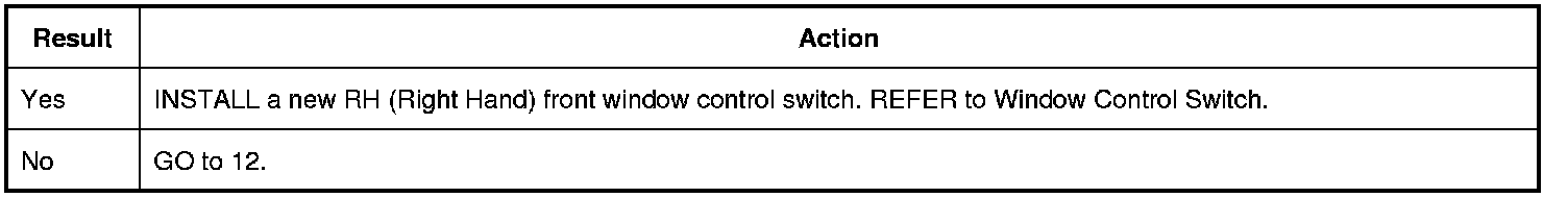11. CHECK THE RH (Right Hand) FRONT WINDOW CONTROL SWITCH OPERATION