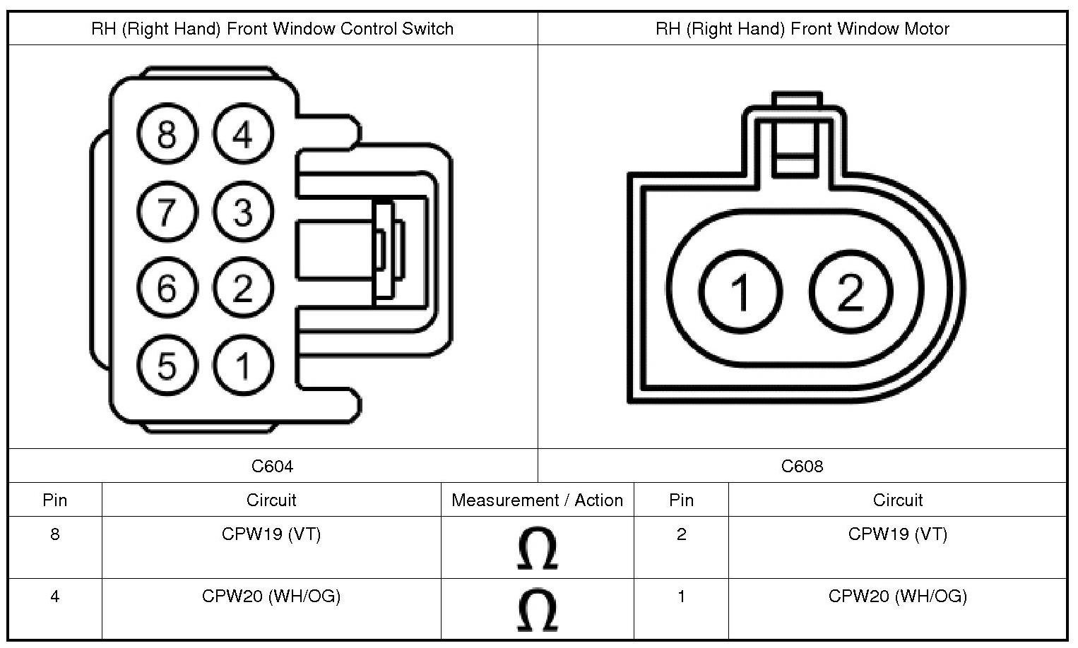 1. Disconnect: RH (Right Hand) Front Window Motor C608.