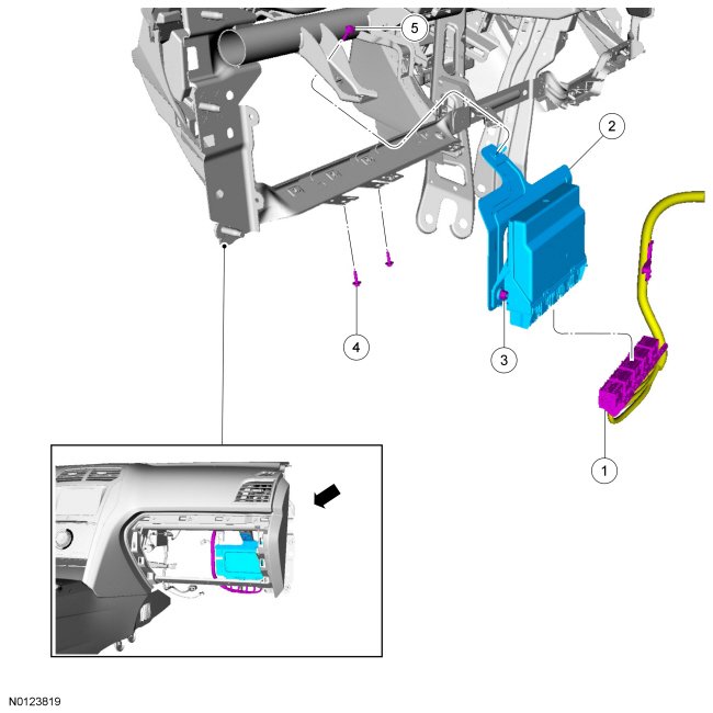 2. Remove the glove box. REFER to Instrument Panel - Exploded View .