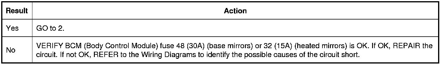 - Inspect BCM (Body Control Module) fuse 48 (30A) (base mirrors).