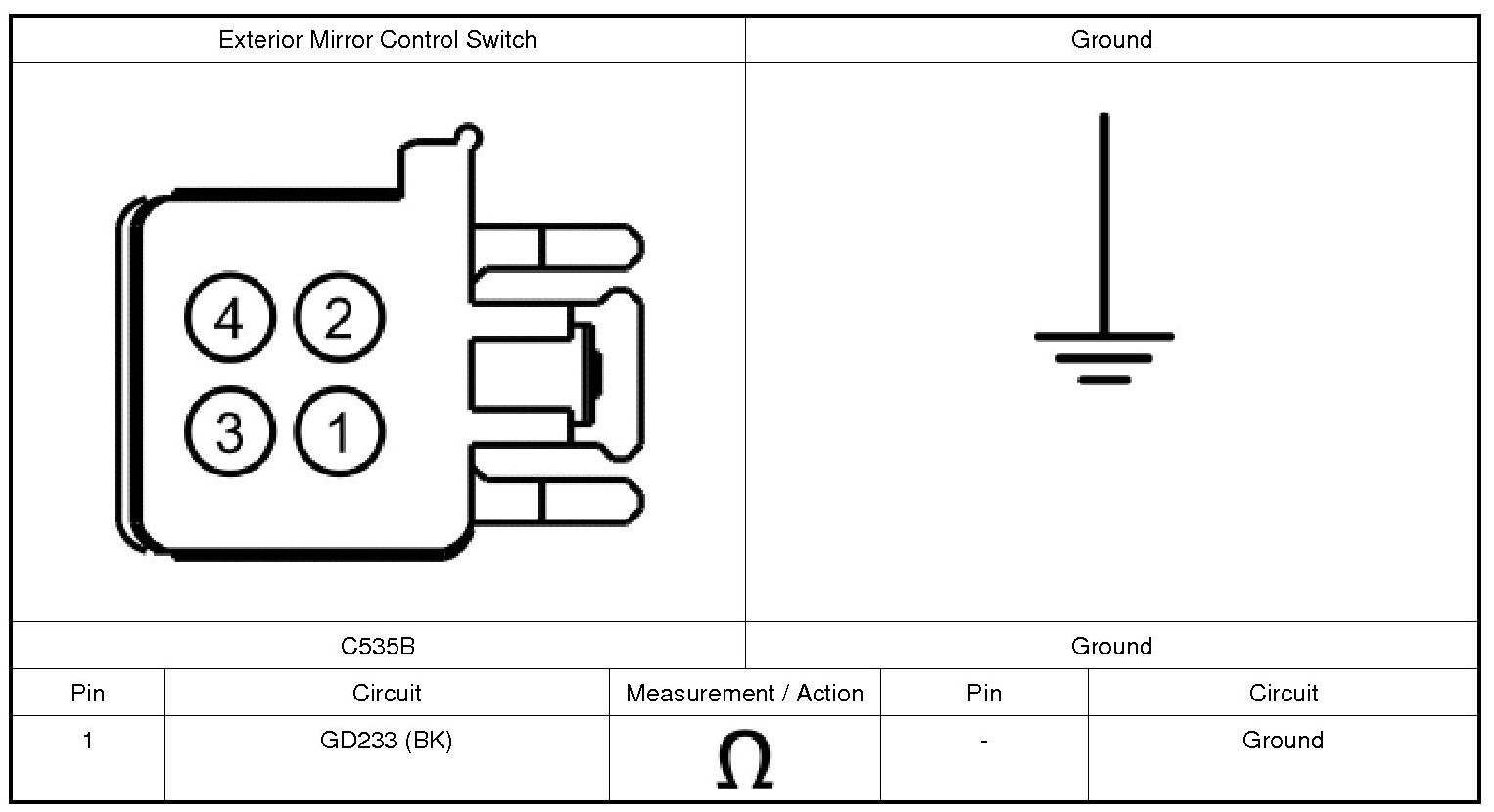 2. Disconnect: Exterior Mirror Control Switch C535B (base mirrors).
