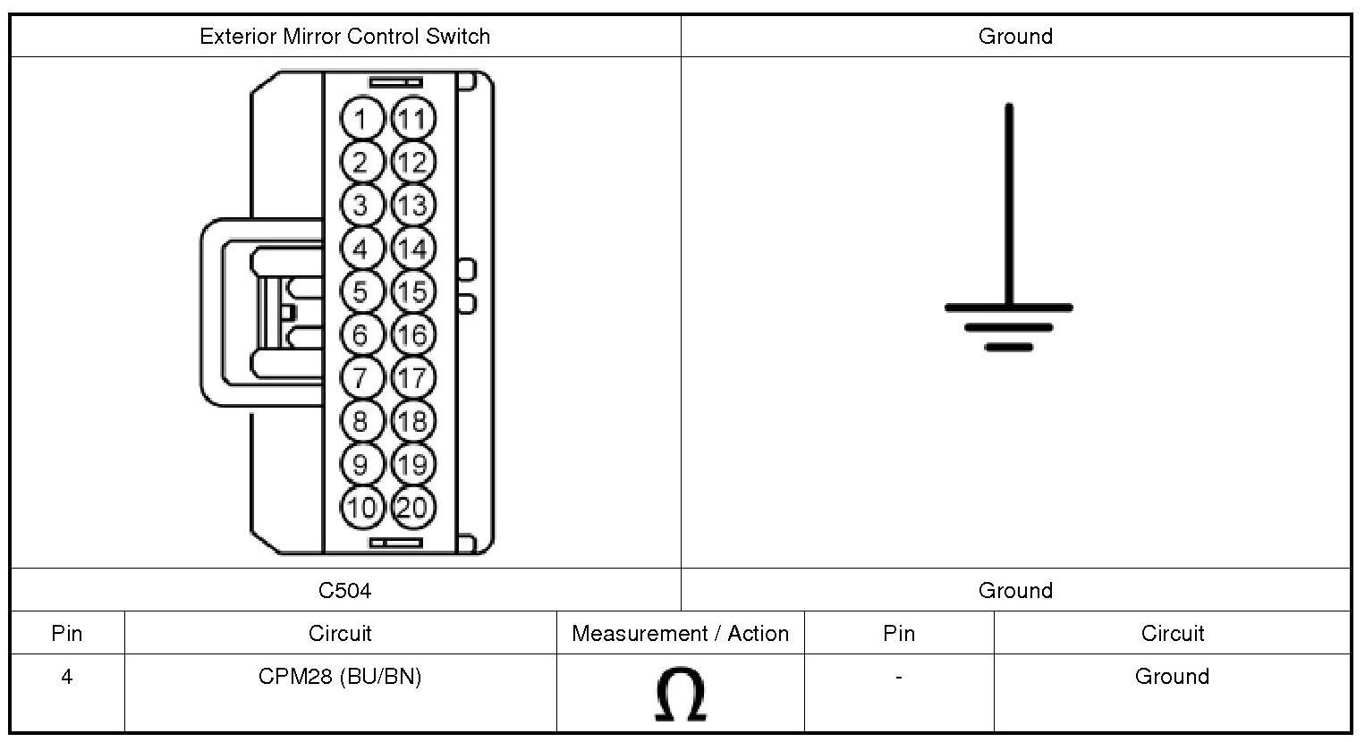 3. Disconnect: Exterior Mirror Control Switch C504 (heated mirrors).