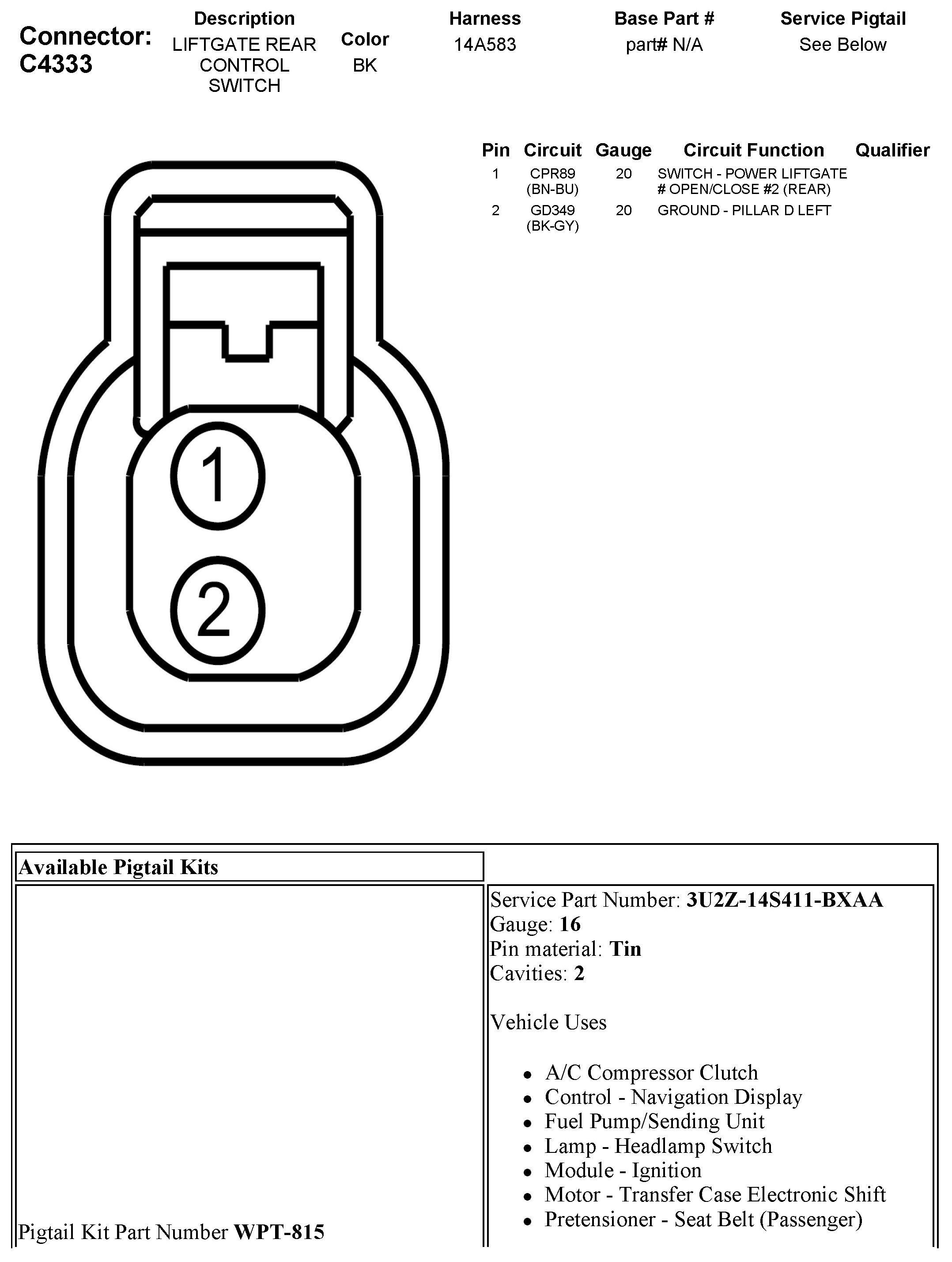 Trunk / Liftgate Switch