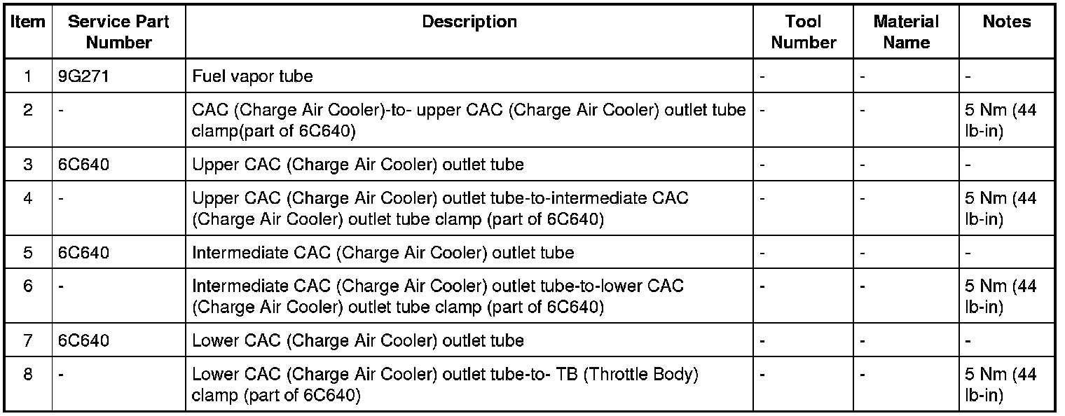 2.0L GTDI Charge Air Cooler (CAC) Inlet Pipes