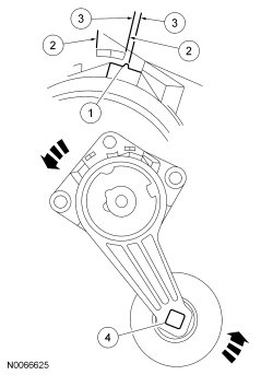 1. NOTE: Belt Tensioner With Belt Length Indicator - 3.5L Ti-VCT (Twin Independent Variable Cam Timing).