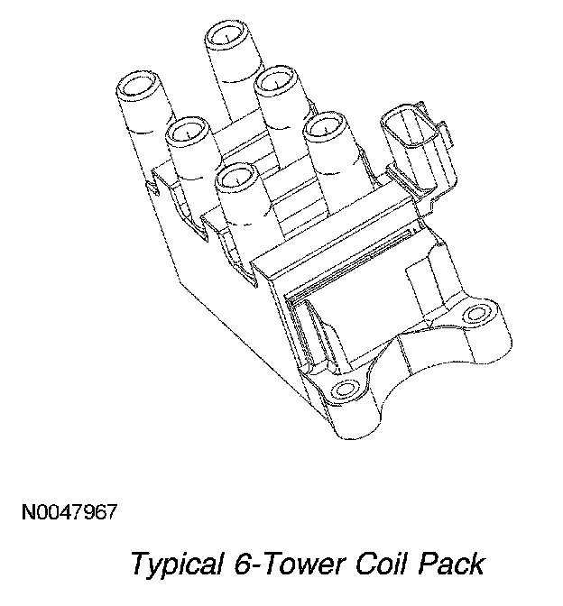 When the coil is fired by the PCM, spark is delivered through the matched pair towers to their respective spark plugs. The spark plugs are fired simultaneously and are paired so that as one fires on the compression stroke, the other spark plug fires on the exhaust stroke. The next time the coil is fired, the situation is reversed. The next pair of spark plugs fire according to the engine firing order.
