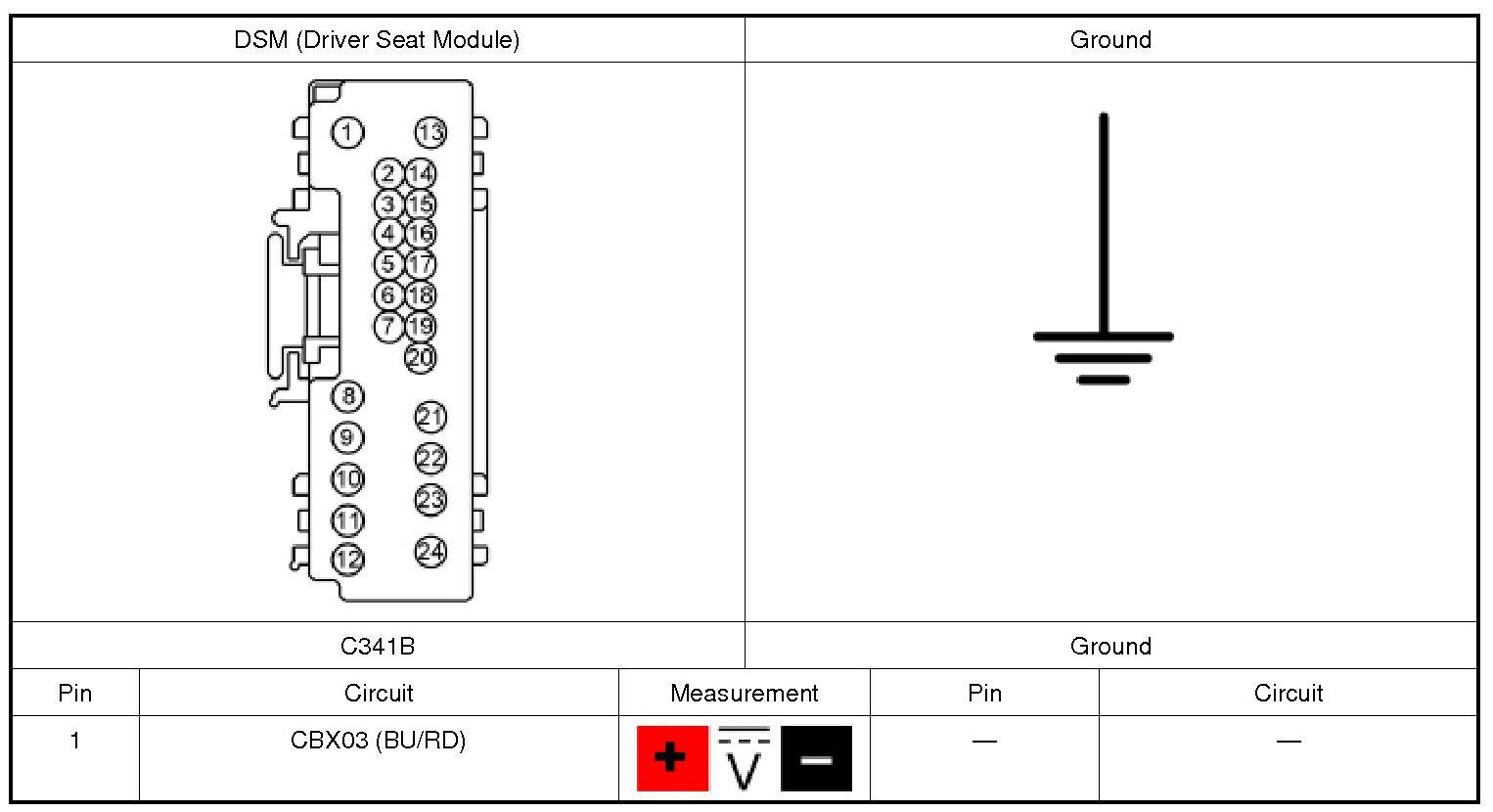 2. CHECK THE DSM (Driver Seat Module) GROUND CIRCUIT FOR AN OPEN