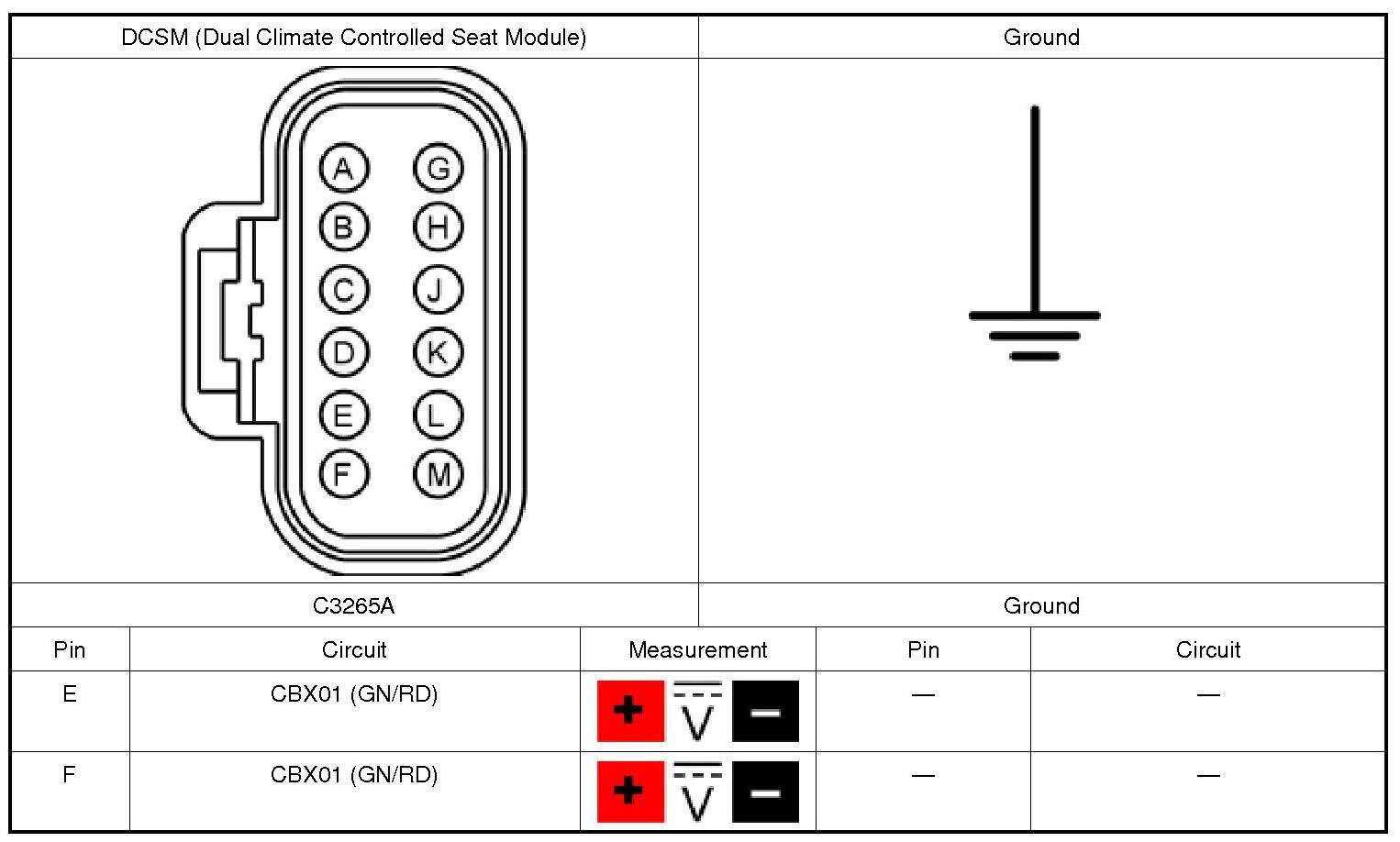 2. CHECK THE DCSM (Dual Climate Controlled Seat Module) GROUND CIRCUIT FOR AN OPEN