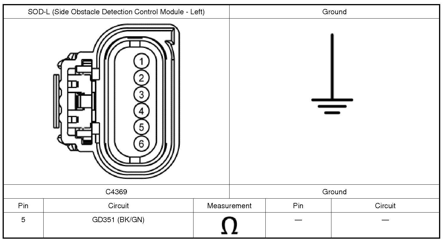 2. CHECK THE SOD-L (Side Obstacle Detection Control Module - Left) GROUND CIRCUIT FOR AN OPEN