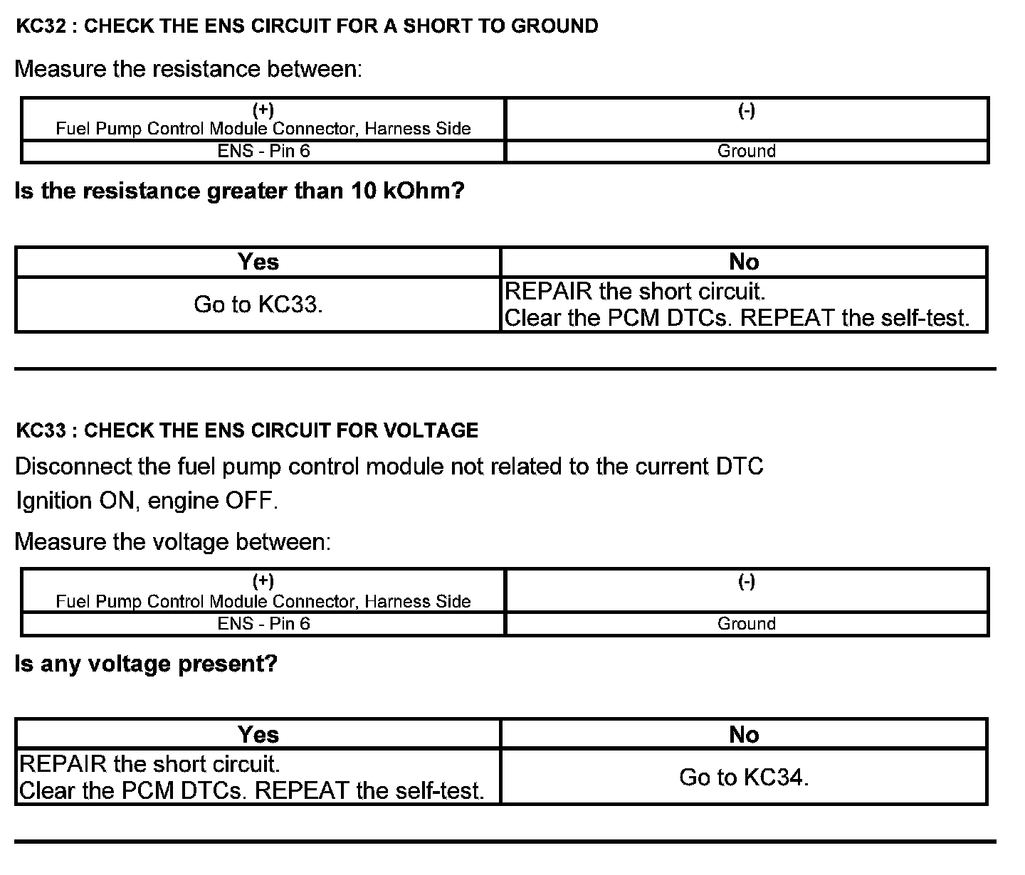 Test KC: Fuel Pump Control Module