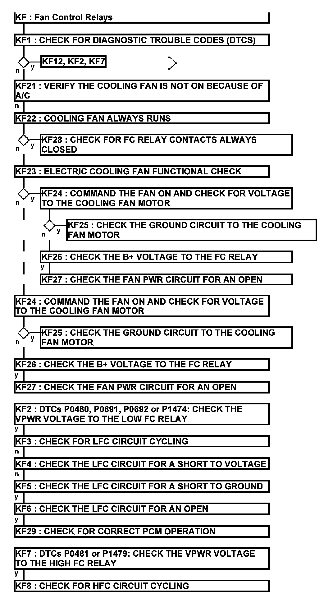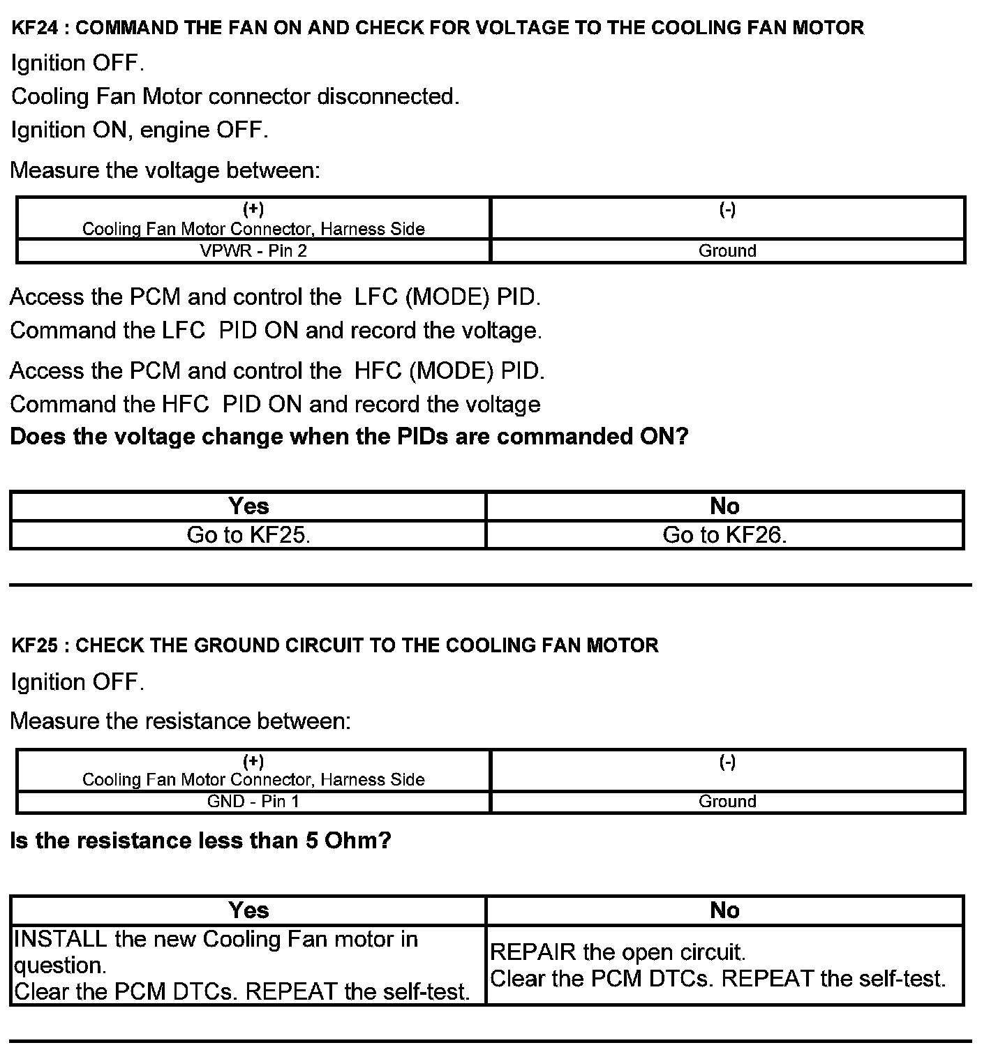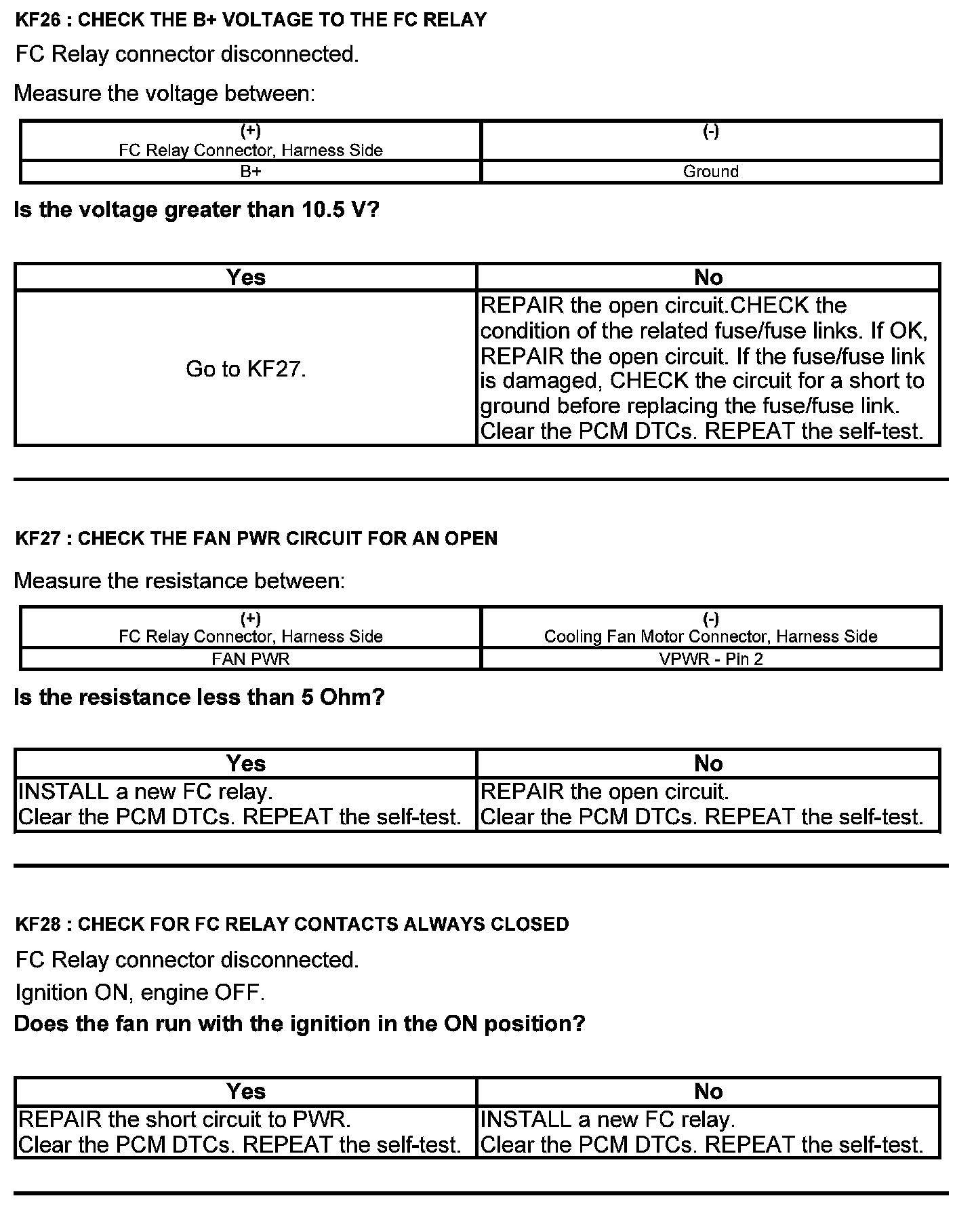 Home >> Ford >> 2012 >> Explorer FWD V6-3.5L >> Repair and Diagnosis >> Powertrain Management >> Computers and Control Systems >> Testing and Inspection >> Pinpoint Tests >> Test KF: Fan Control Relays
