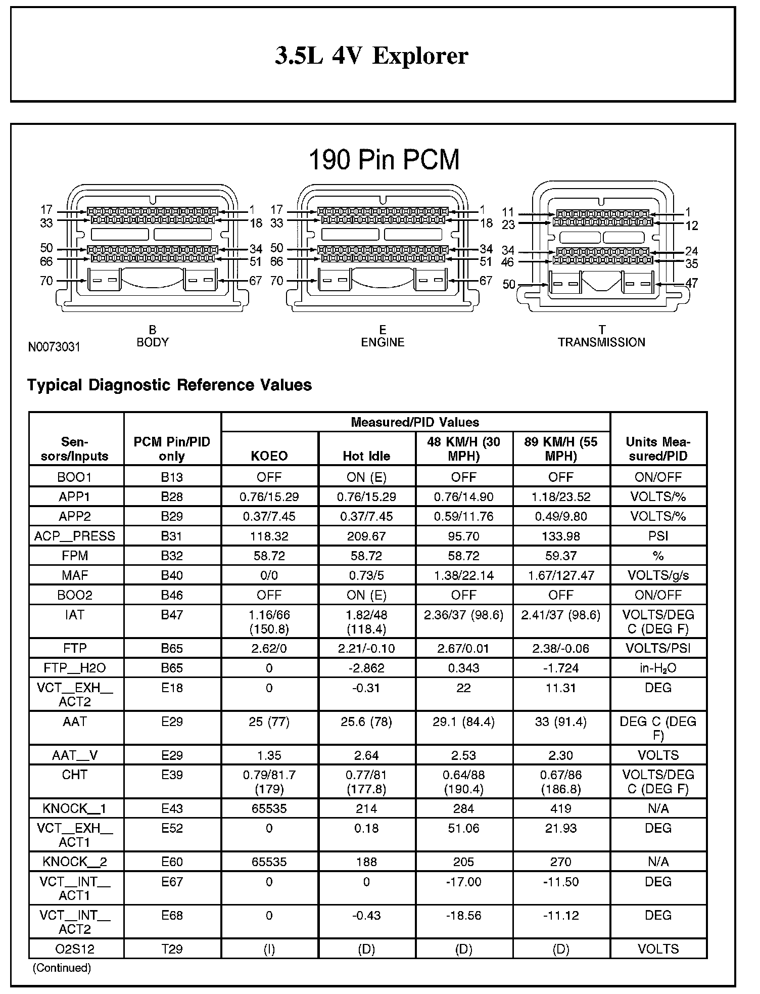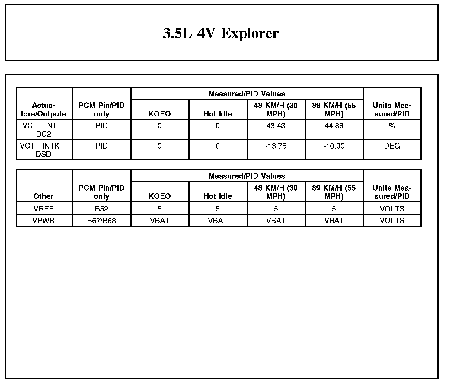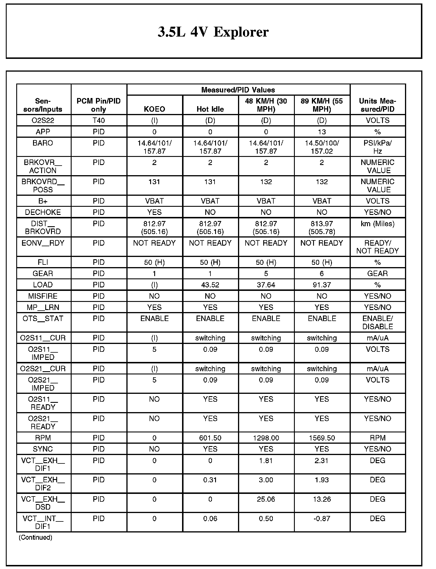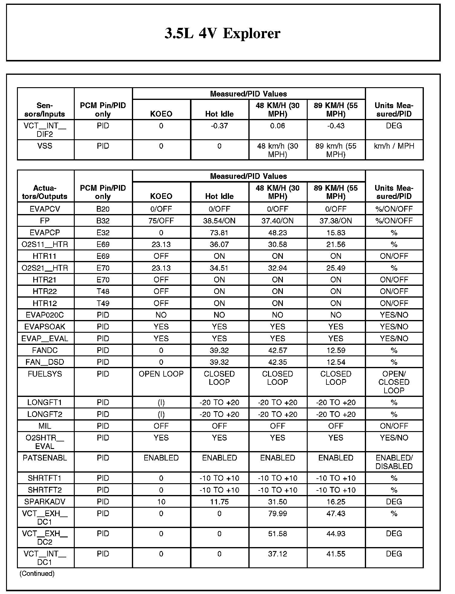 Home >> Ford >> 2012 >> Explorer FWD V6-3.5L >> Repair and Diagnosis >> Powertrain Management >> Computers and Control Systems >> Testing and Inspection >> Scan Tool Testing and Procedures >> Typical Diagnostic Reference Values