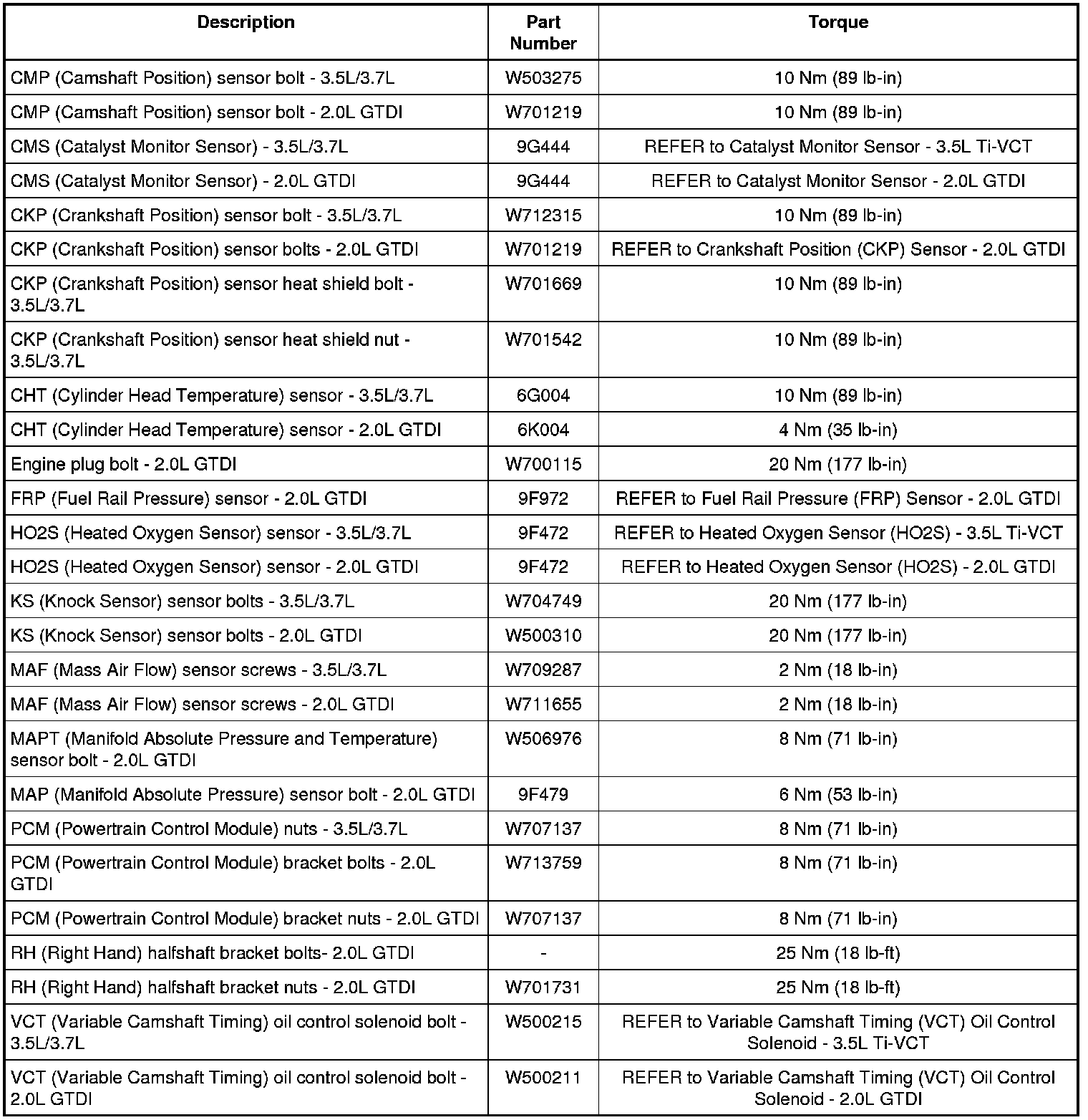Torque Specifications