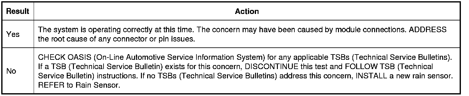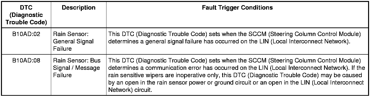 When an inoperative condition exists in the rain sensitive wiper system (or if the rain sensitive wiper feature is not enabled through the message center), the rain sensitive wiper system defaults to the normal intermittent (dwell time) settings.