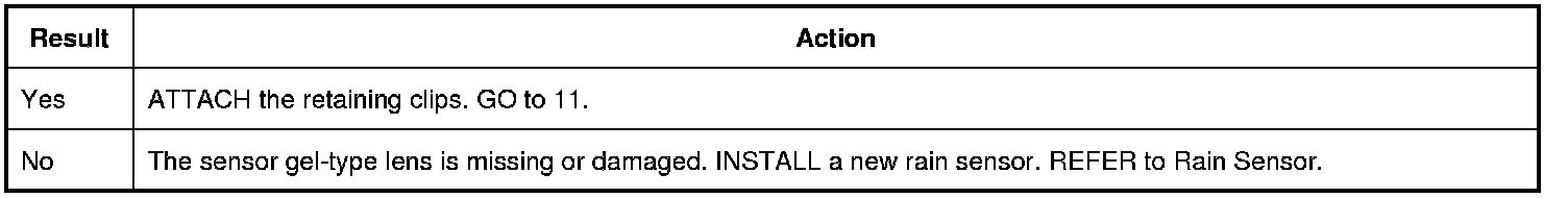 1. From the outside of the vehicle, inspect the area of the windshield glass where the rain sensor is mounted. The rain sensor contact area should appear black, with no bubbles, air pockets or contaminants between the windshield glass and the rain sensor.