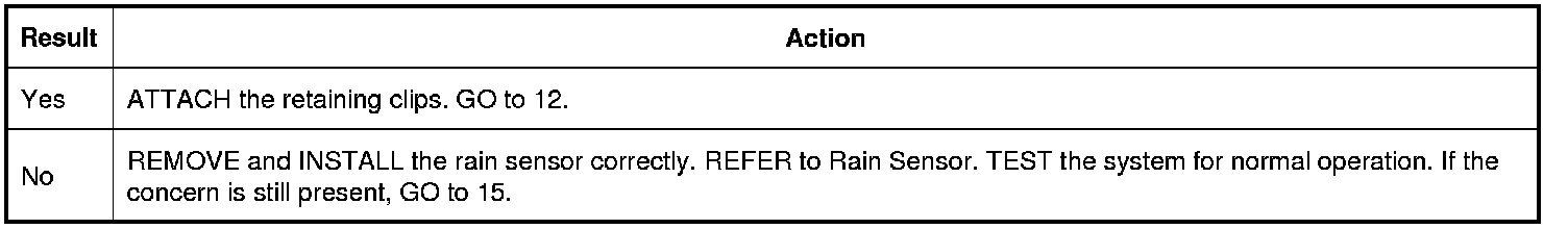 15. CHECK THE RAIN SENSOR FOR CORRECT OPERATION
