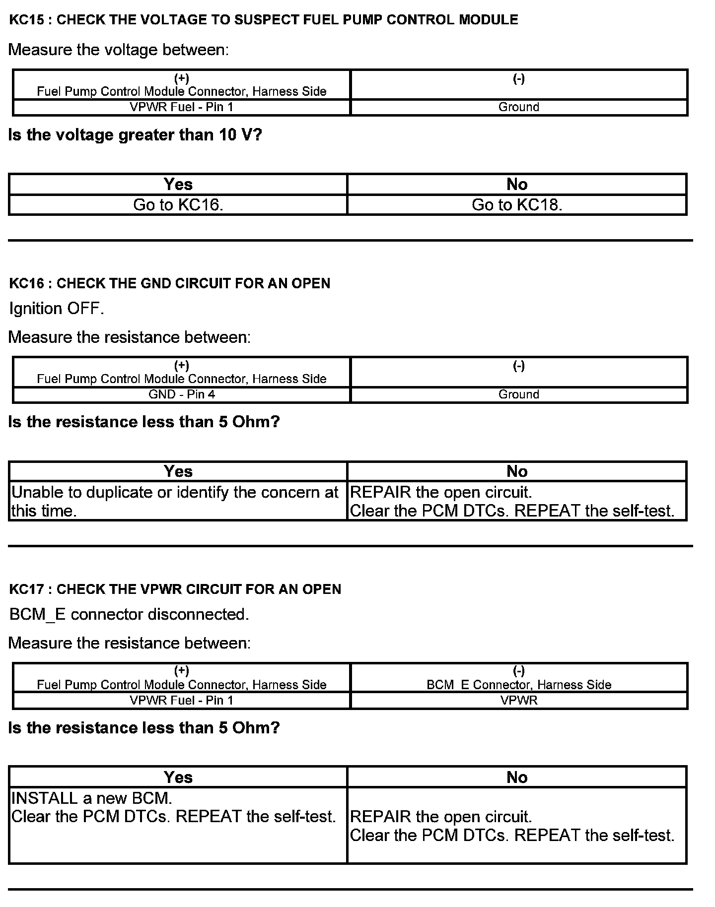 Home >> Ford >> 2012 >> F 150 2WD V6-3.5L Turbo >> Repair and Diagnosis >> Powertrain Management >> Computers and Control Systems >> Testing and Inspection >> Pinpoint Tests >> Test KC: Fuel Pump Control Module