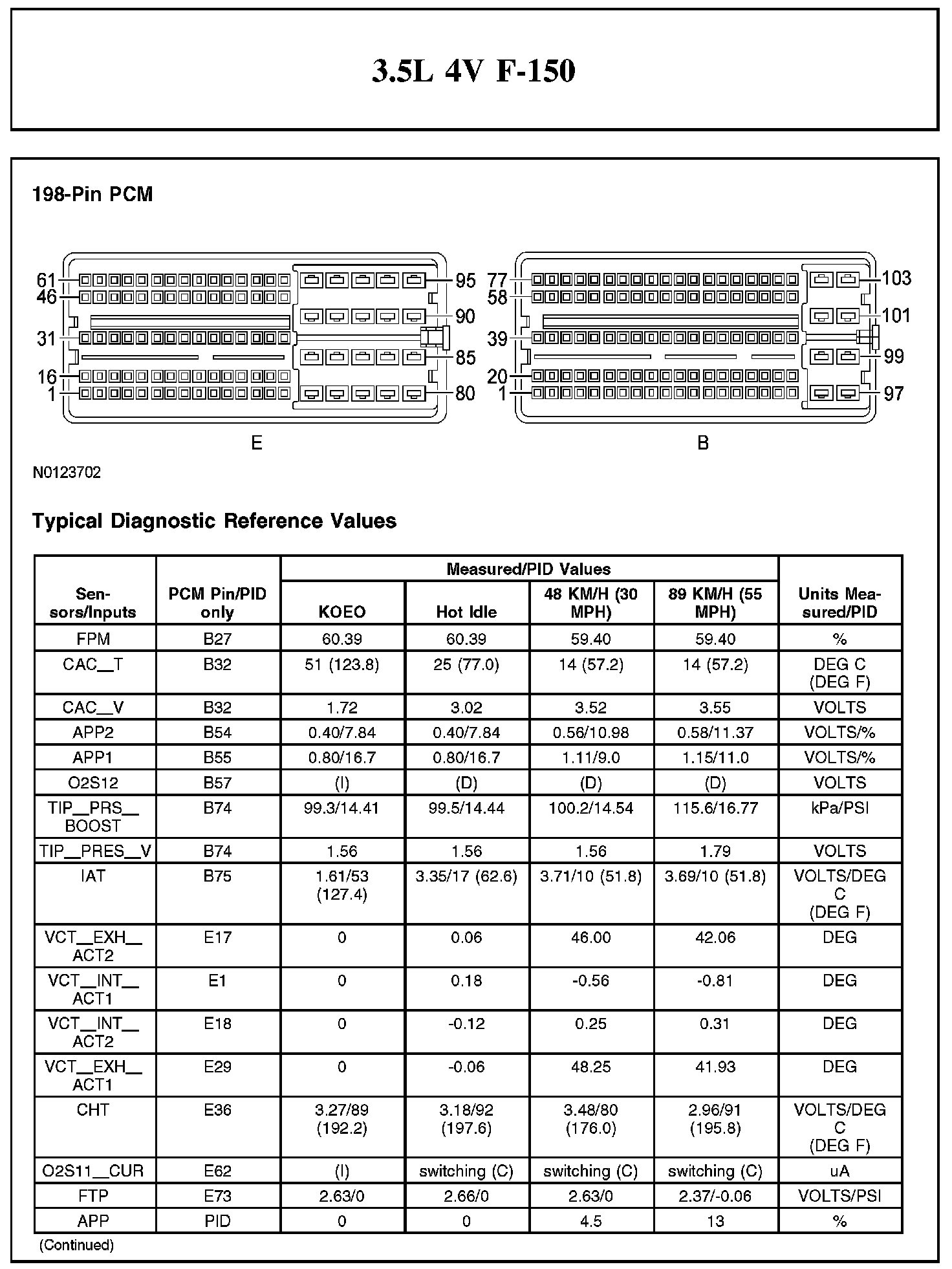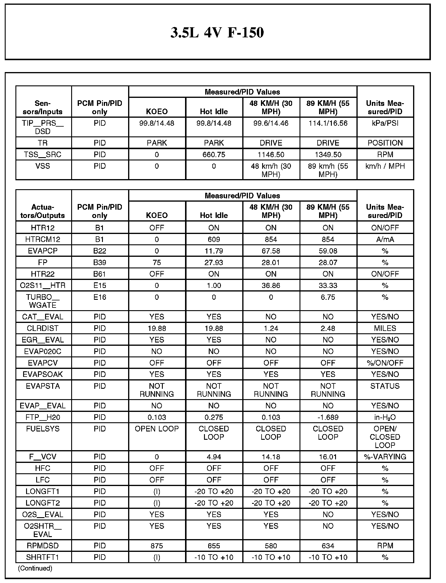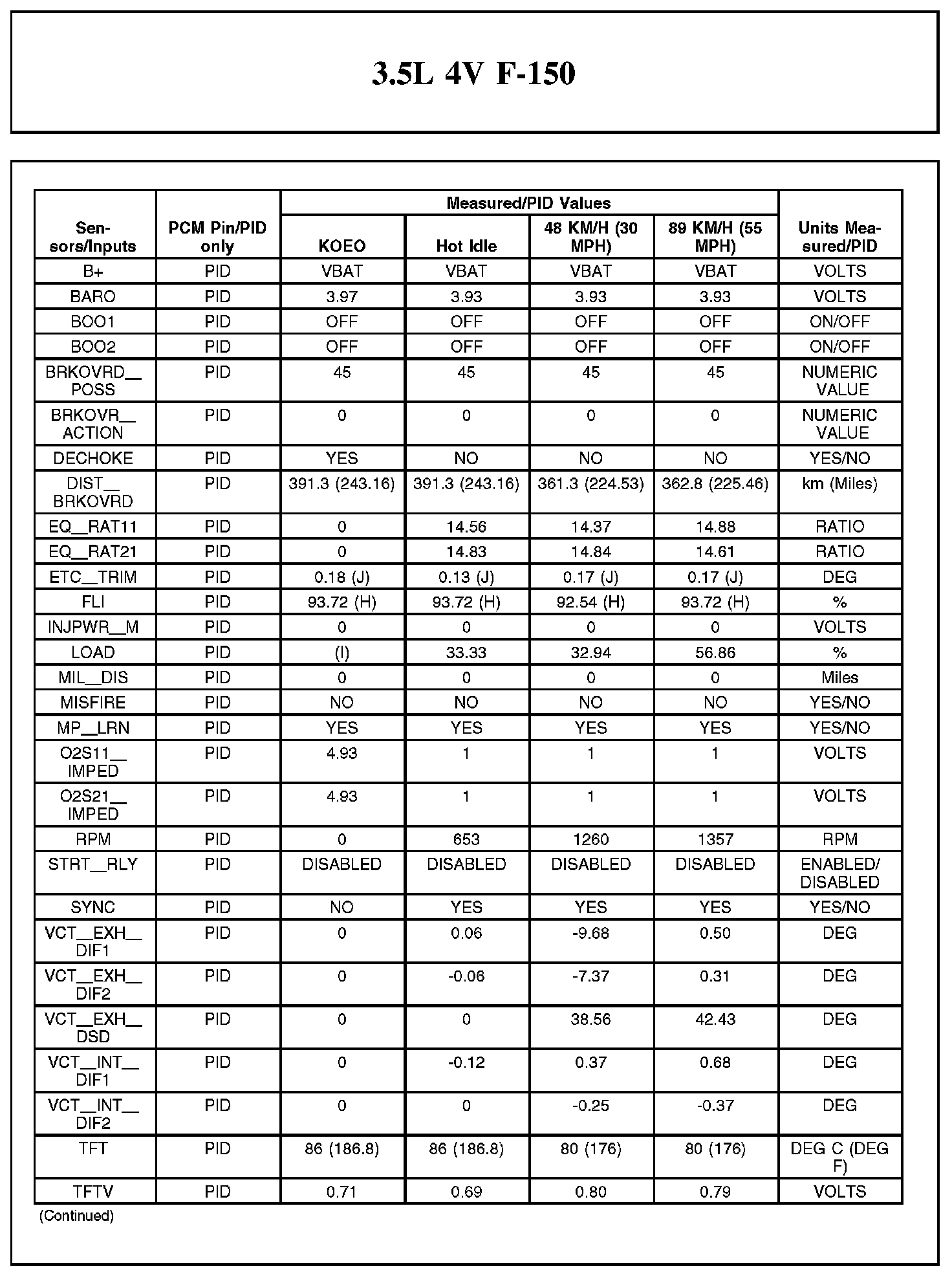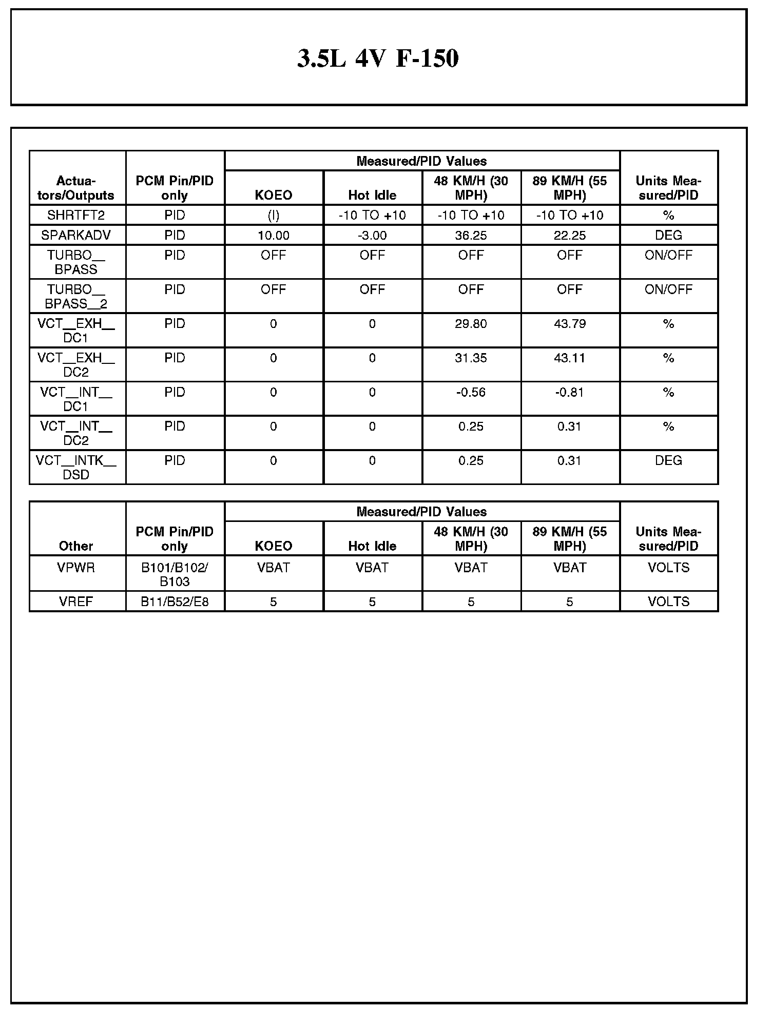 Home >> Ford >> 2012 >> F 150 2WD V6-3.5L Turbo >> Repair and Diagnosis >> Powertrain Management >> Computers and Control Systems >> Testing and Inspection >> Scan Tool Testing and Procedures >> Typical Diagnostic Reference Values