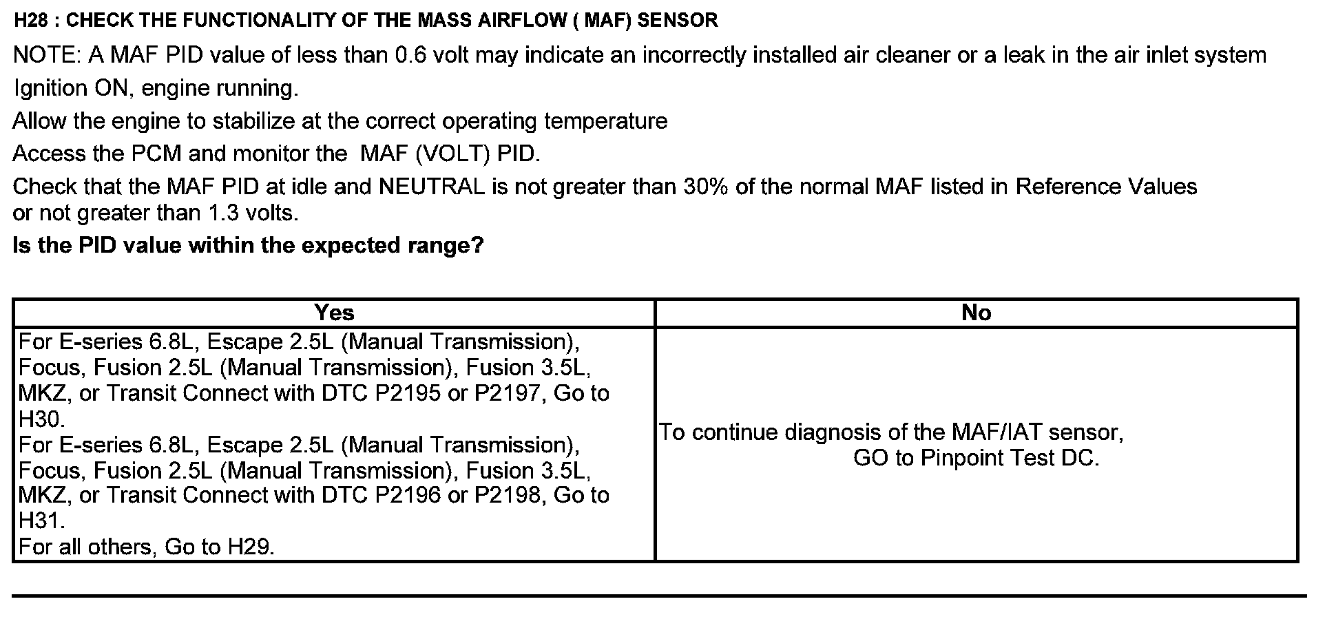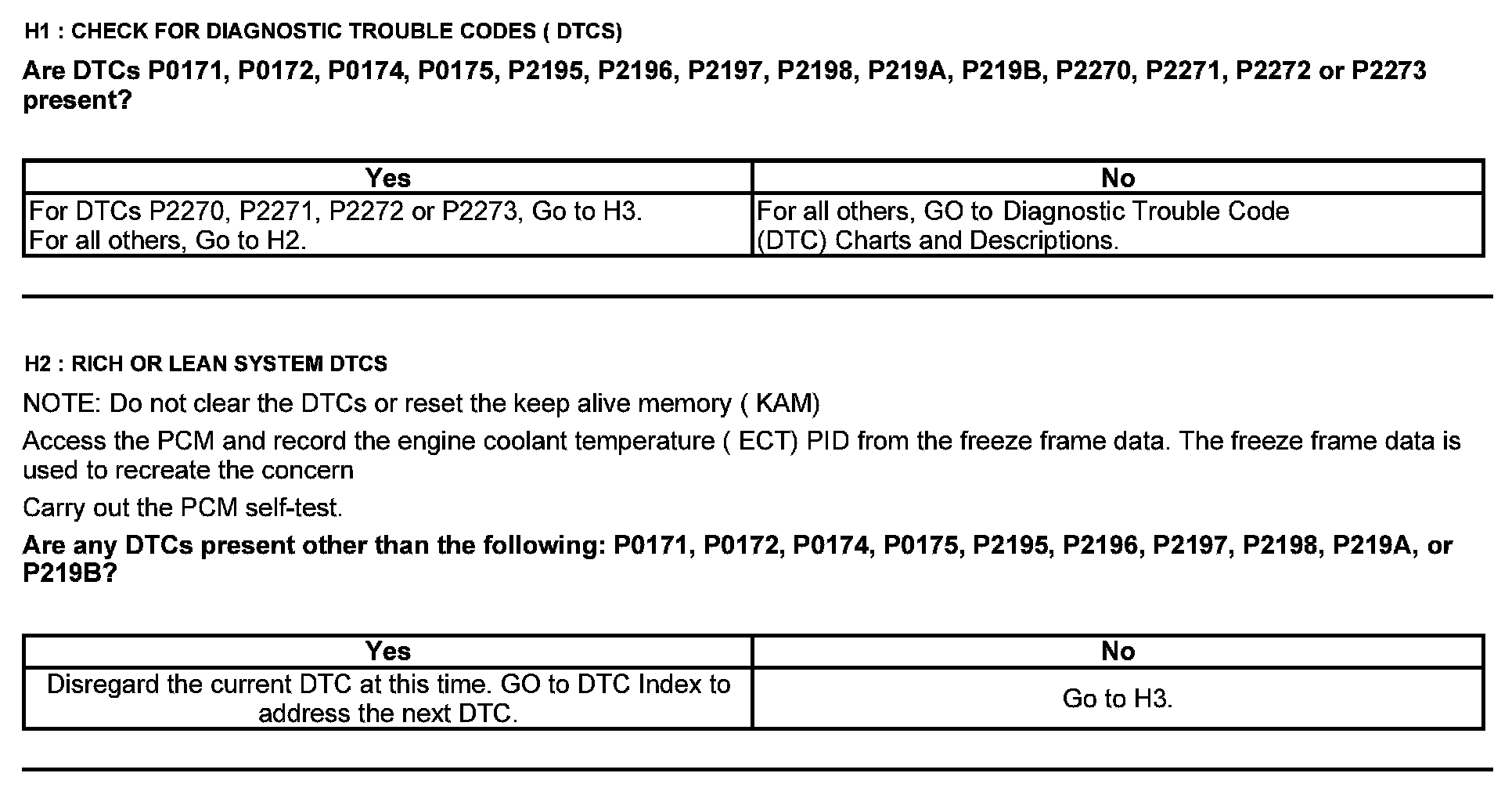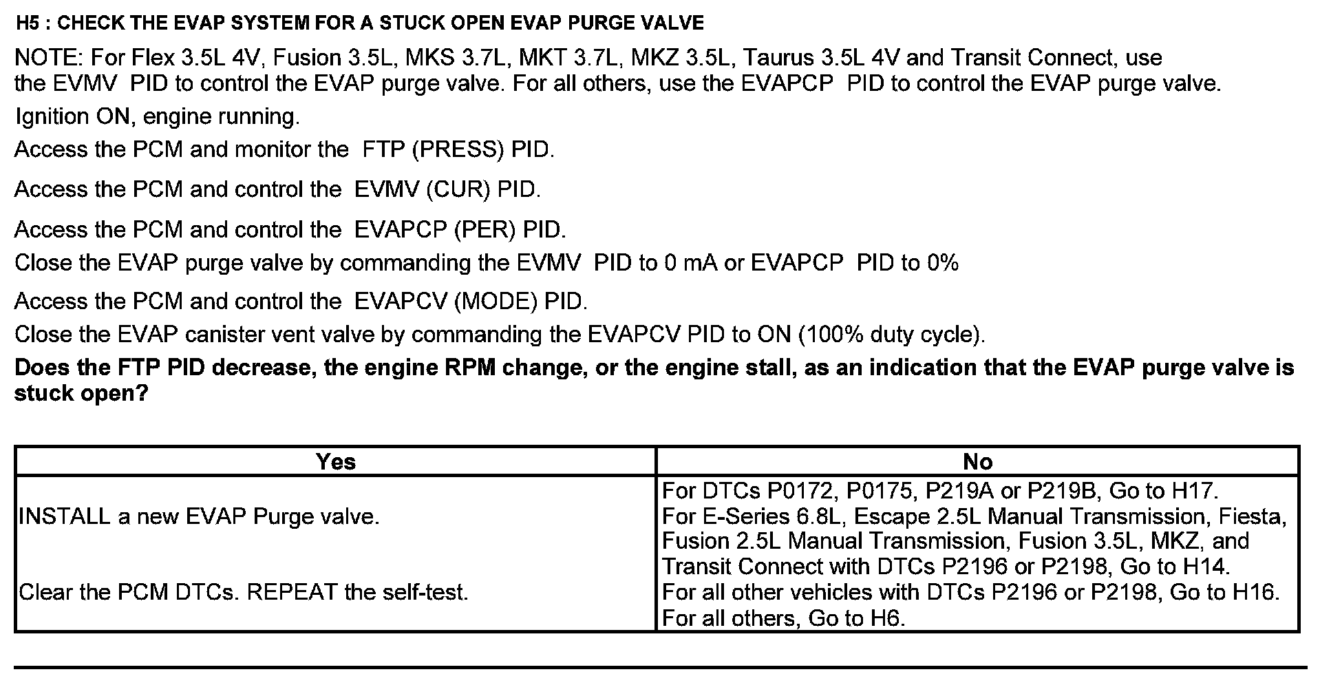 Home >> Ford >> 2012 >> F 150 2WD V6-3.7L >> Repair and Diagnosis >> Powertrain Management >> Computers and Control Systems >> Testing and Inspection >> Pinpoint Tests >> Test H: Fuel Control