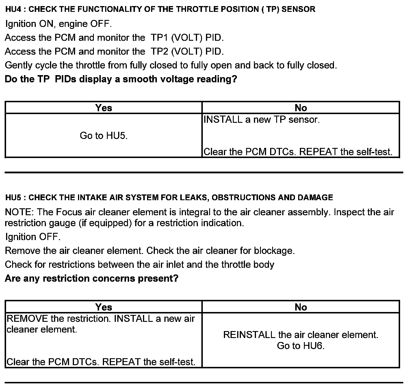 Test HU: Intake Air Systems