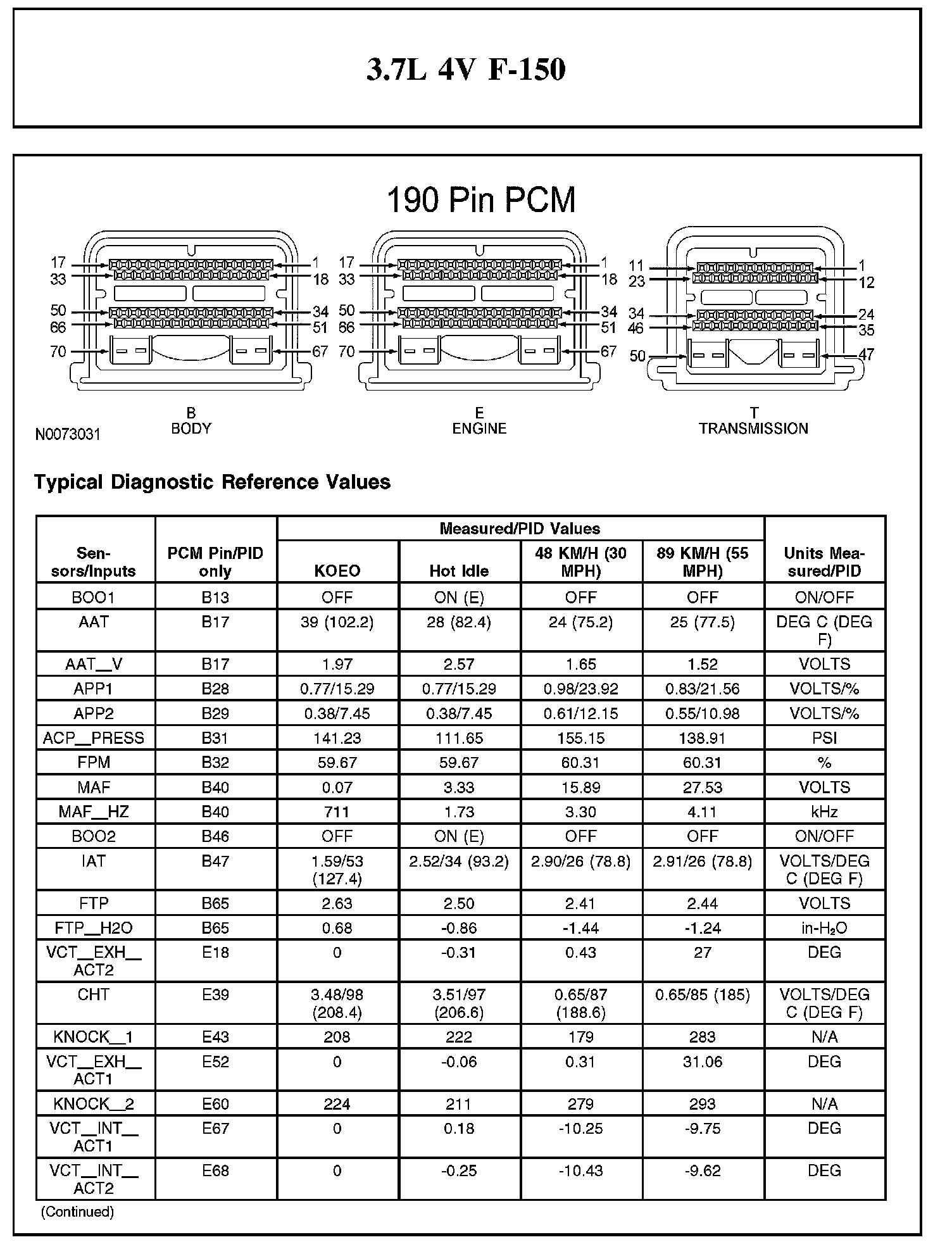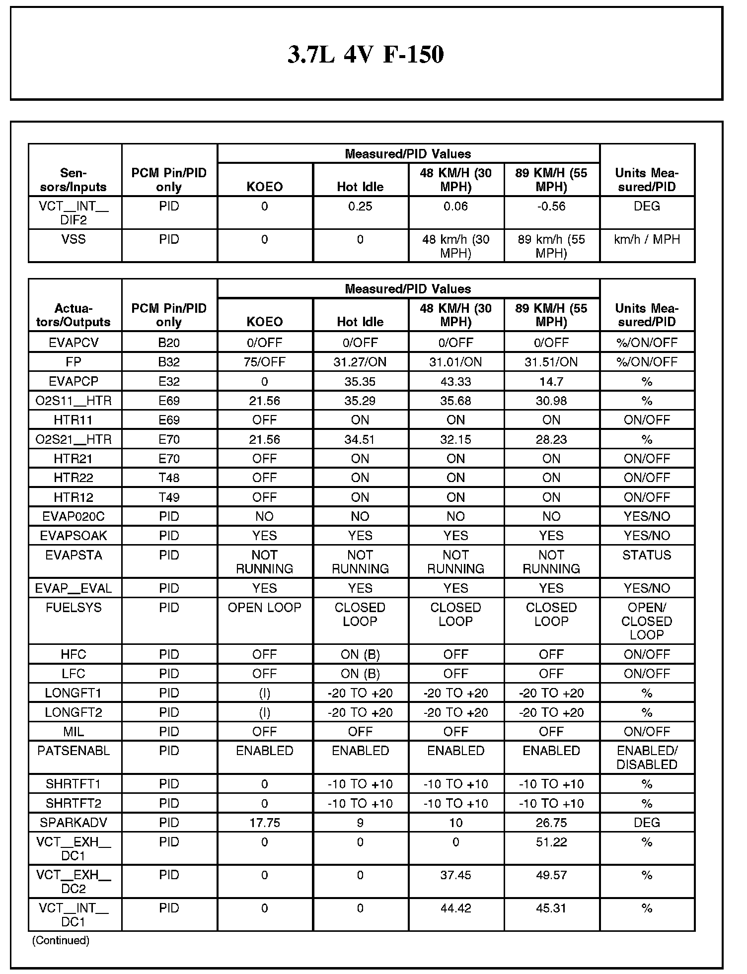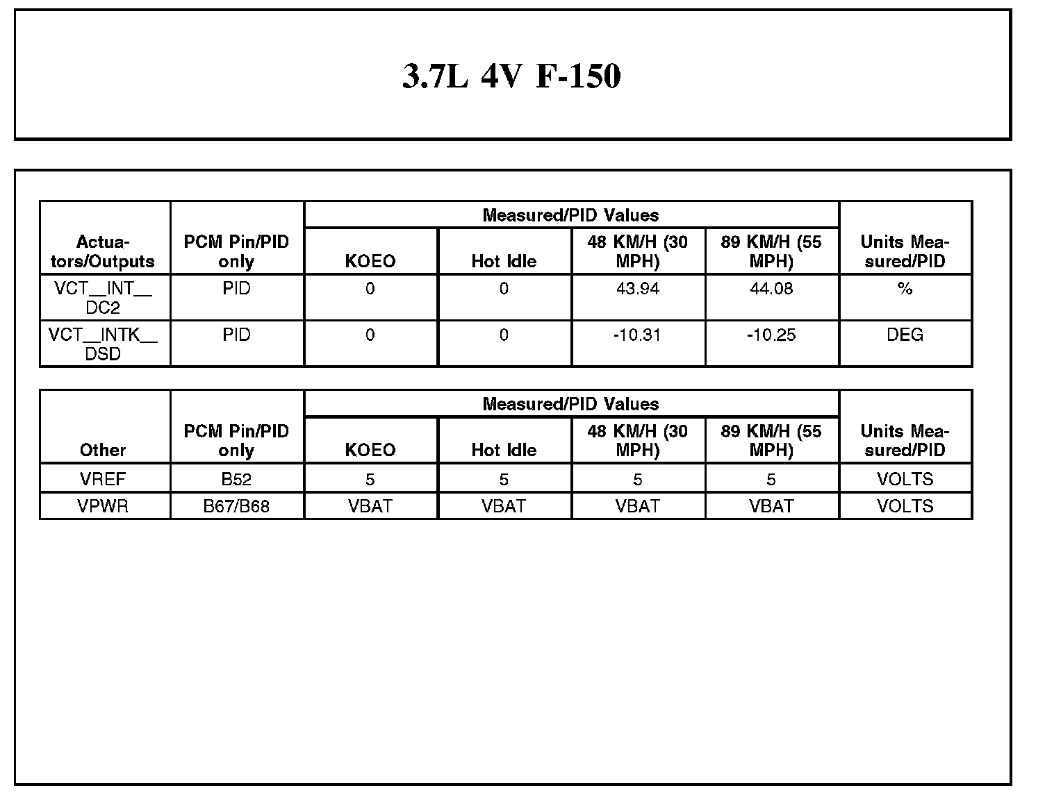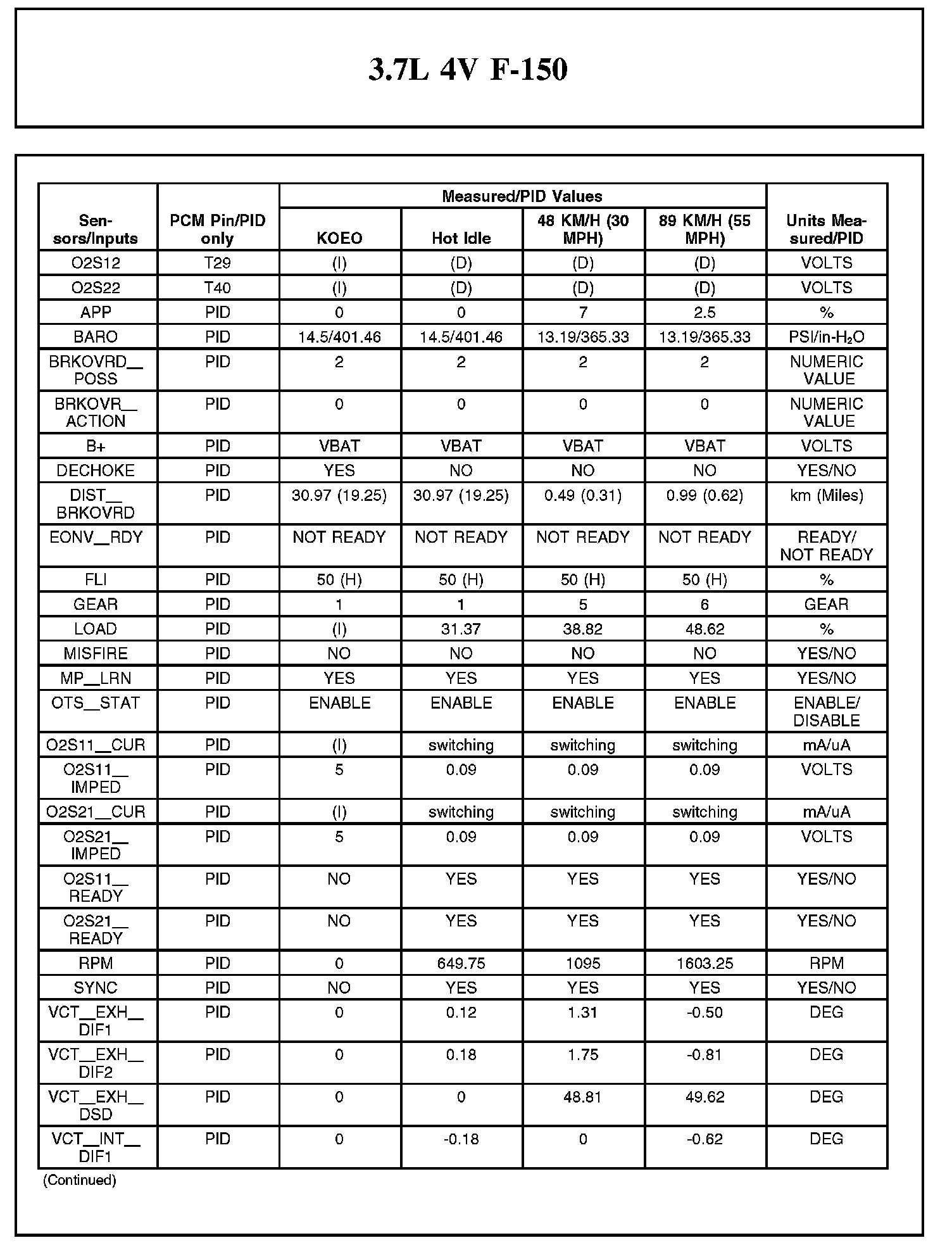 Home >> Ford >> 2012 >> F 150 2WD V6-3.7L >> Repair and Diagnosis >> Powertrain Management >> Computers and Control Systems >> Testing and Inspection >> Scan Tool Testing and Procedures >> Typical Diagnostic Reference Values