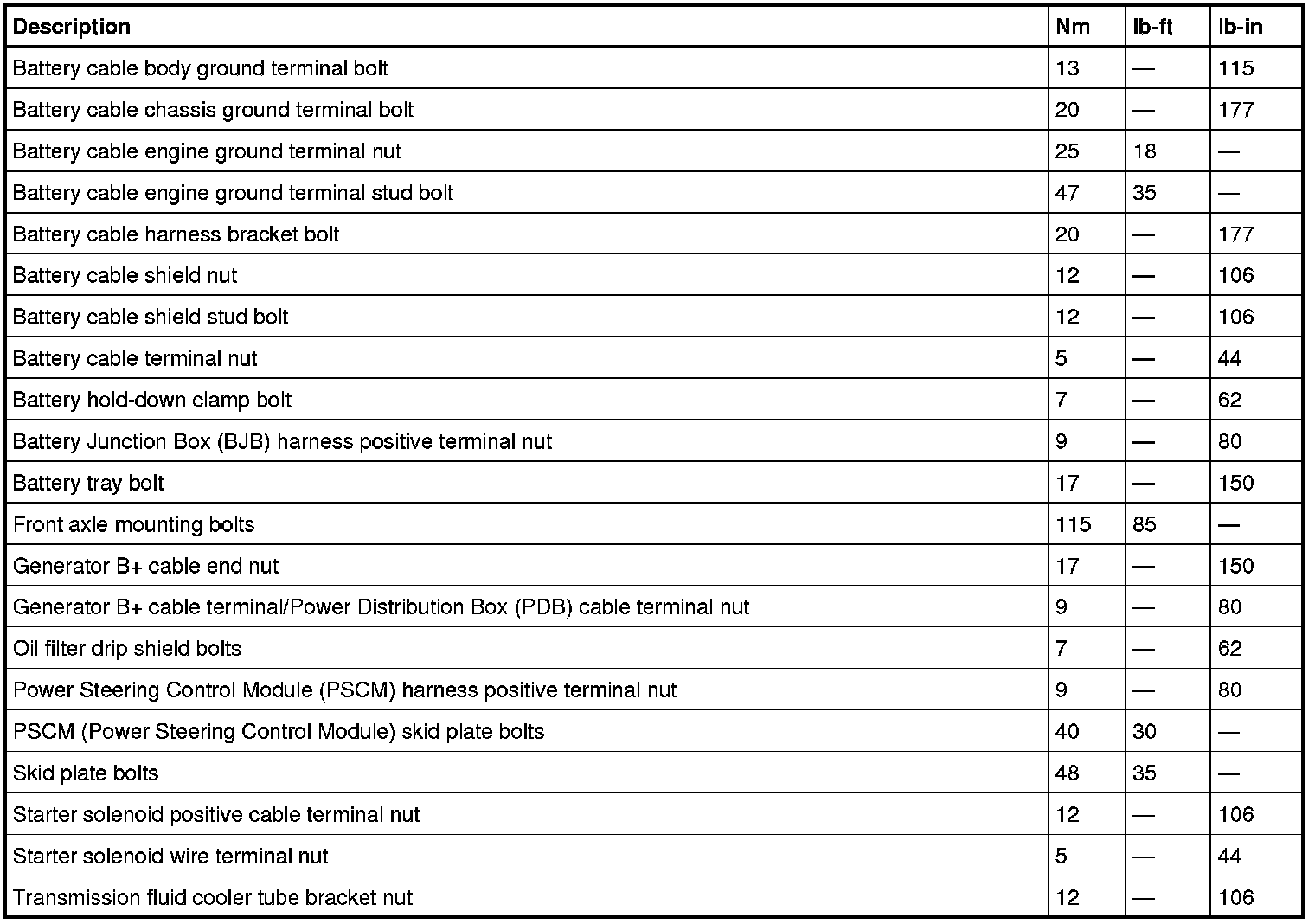 Torque Specifications