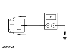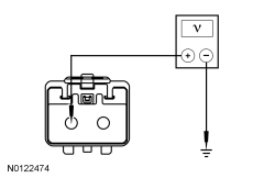 - Measure the voltage between rear window defrost grid power terminal, harness side and ground.