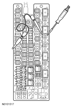 NOTICE: The following step uses a test light to simulate normal circuit loads. Use only the test light recommended in the Special Tools table at the beginning. To avoid connector terminal damage, use the Flex Probe Kit for the test light probe connection to the vehicle. Do not use the test light probe directly on any connector.