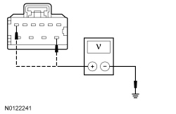 - Measure the voltage between the 4X4 control module C2371A-7, circuit CBB54 (VT/OG), harness side and ground.