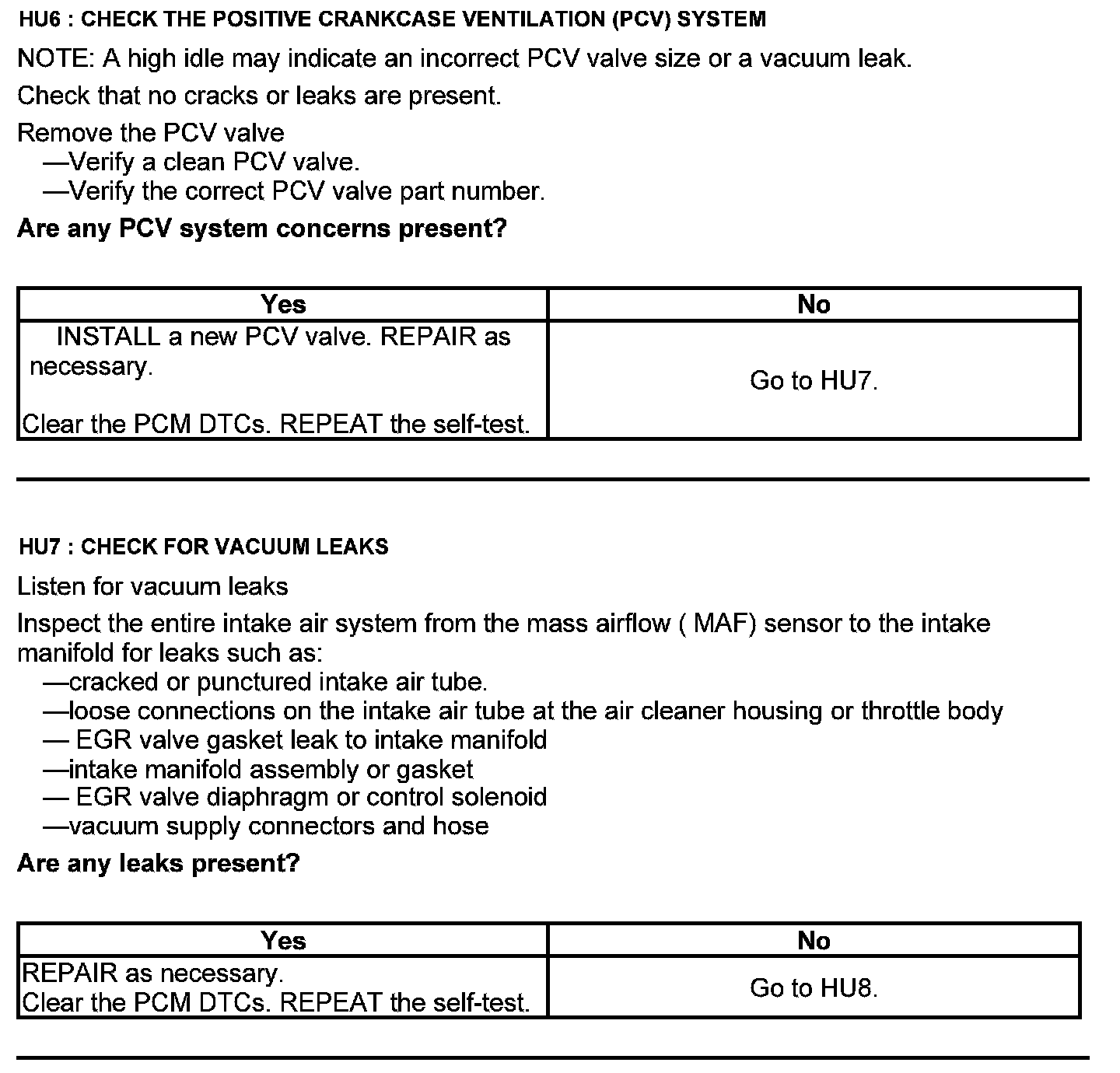 Test HU: Intake Air Systems