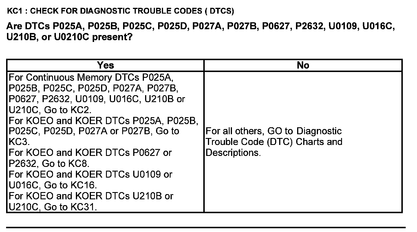 Home >> Ford >> 2012 >> F 150 2WD V8-5.0L >> Repair and Diagnosis >> Powertrain Management >> Computers and Control Systems >> Testing and Inspection >> Pinpoint Tests >> Test KC: Fuel Pump Control Module