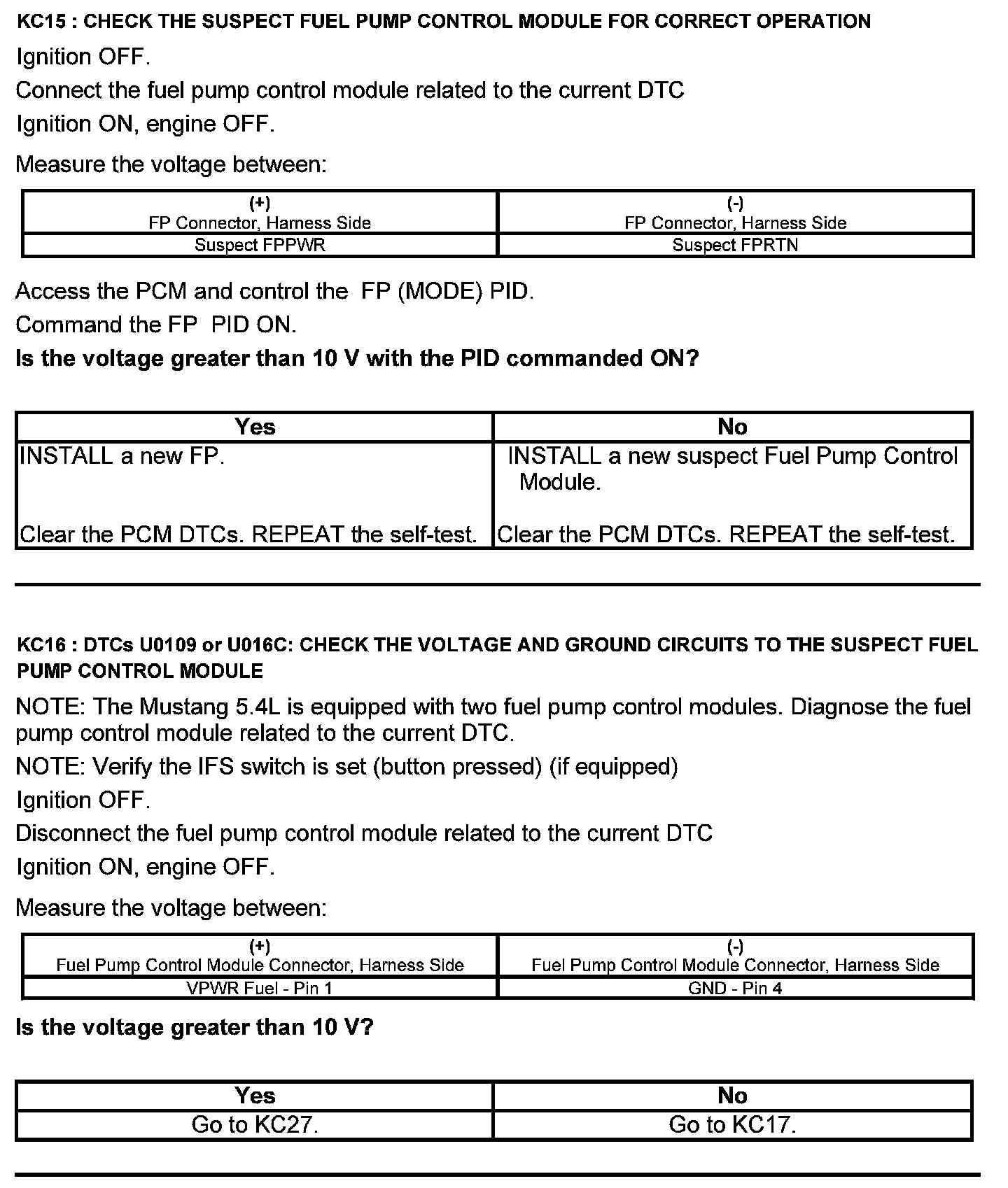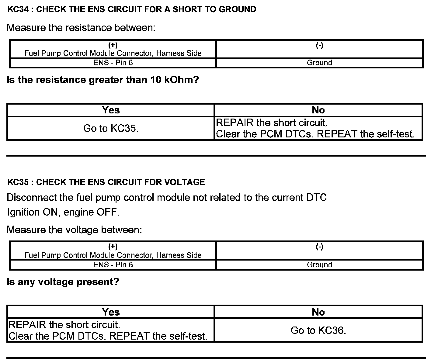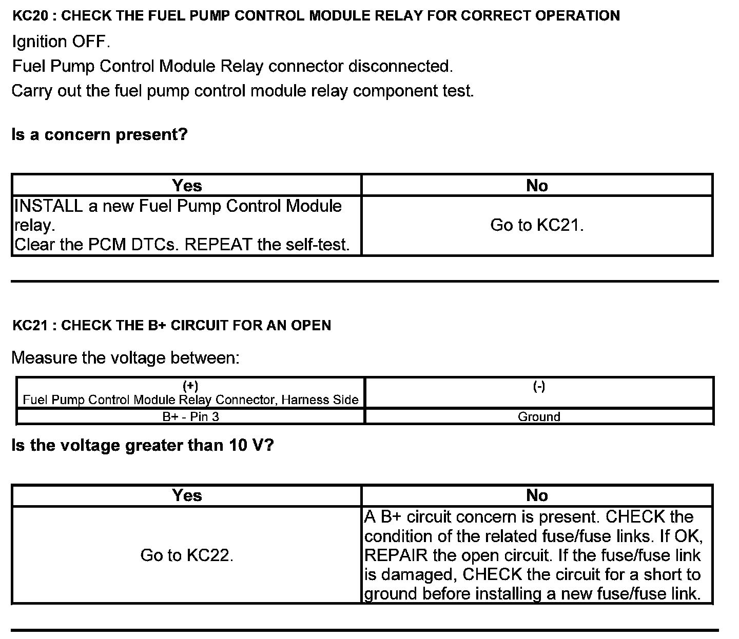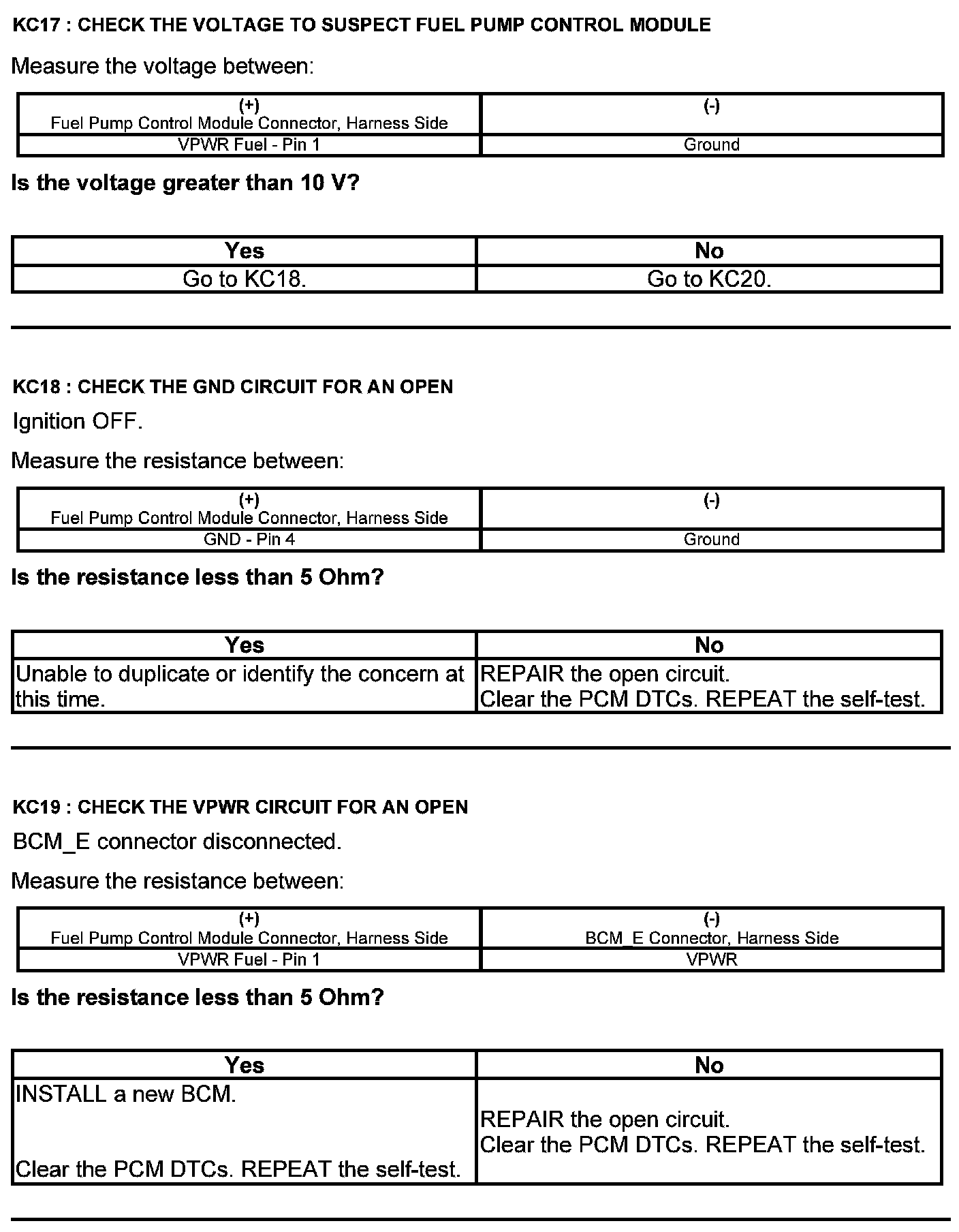 Test KC: Fuel Pump Control Module