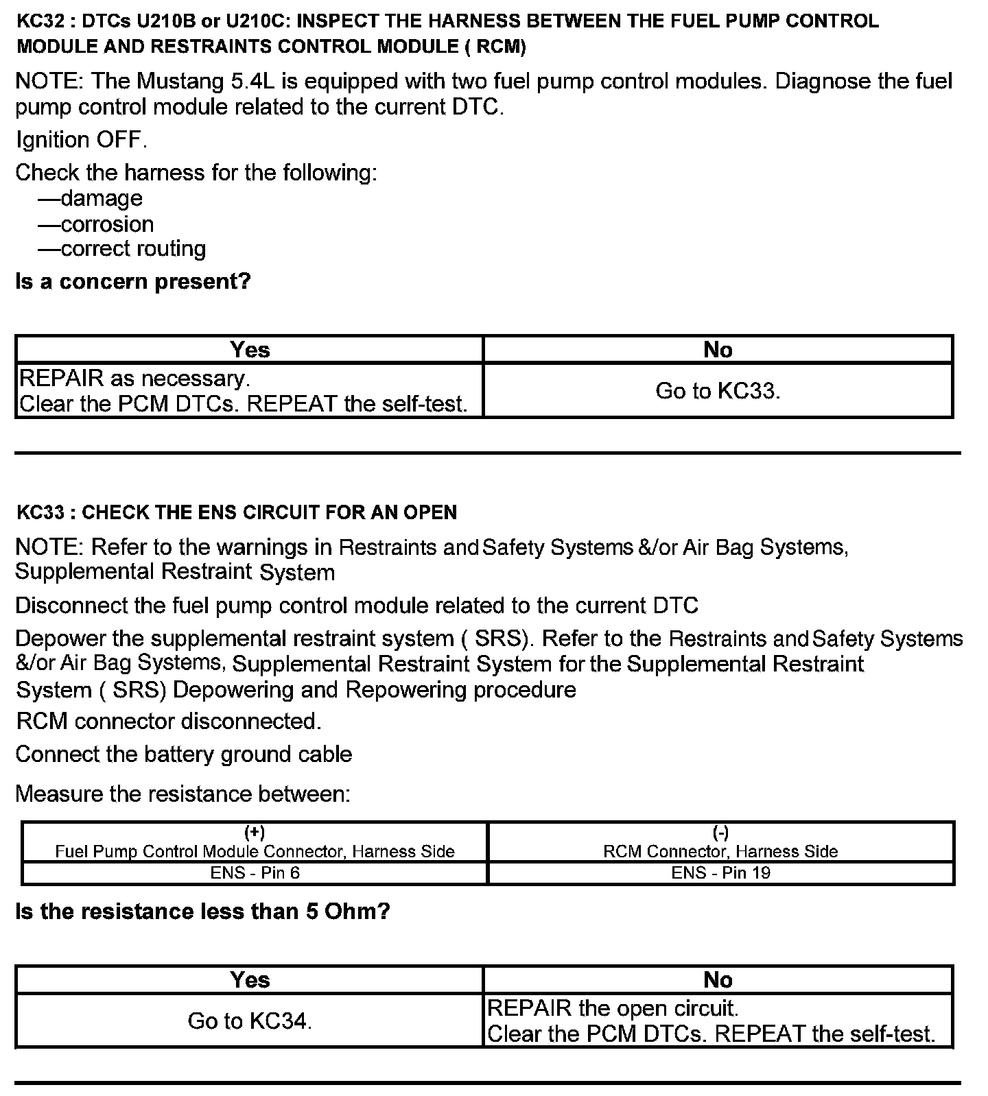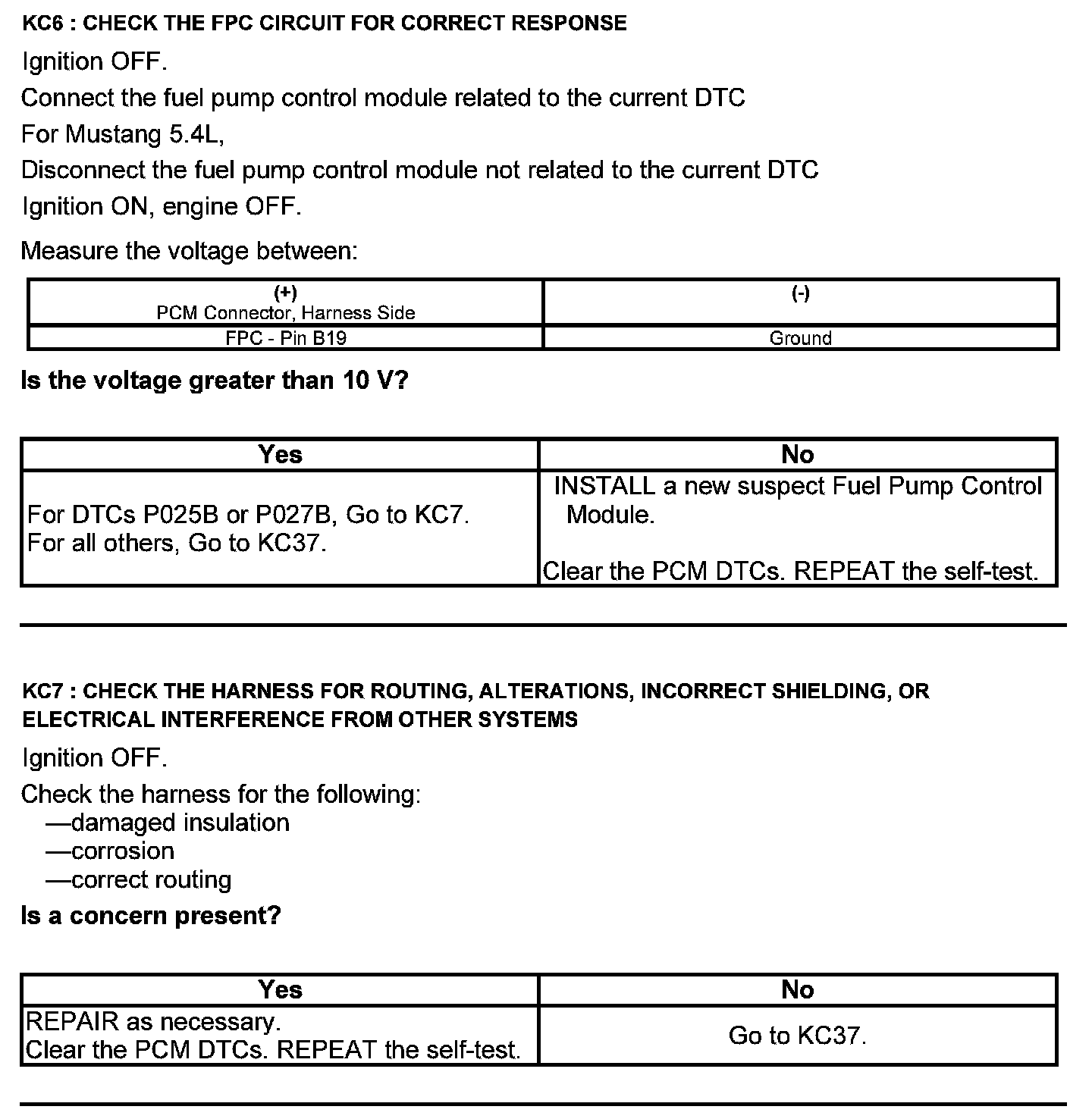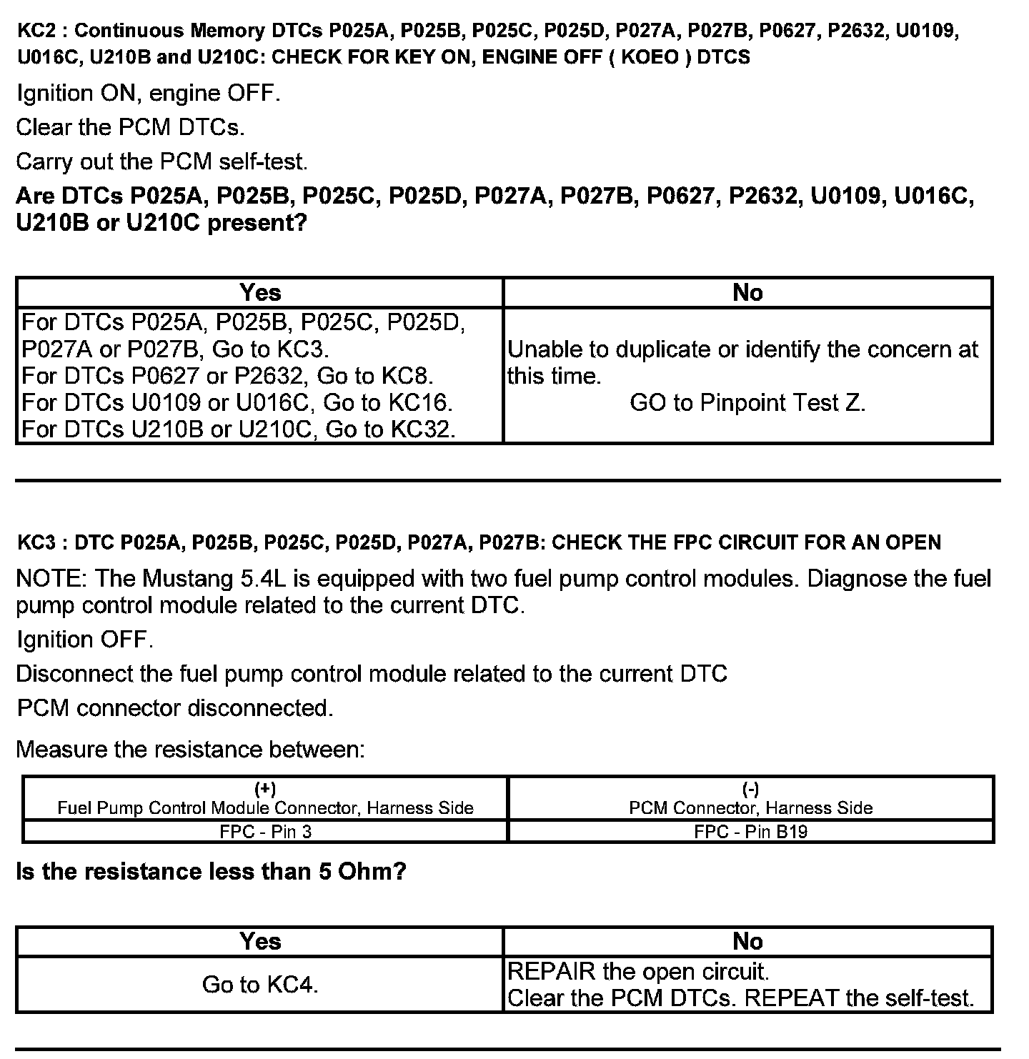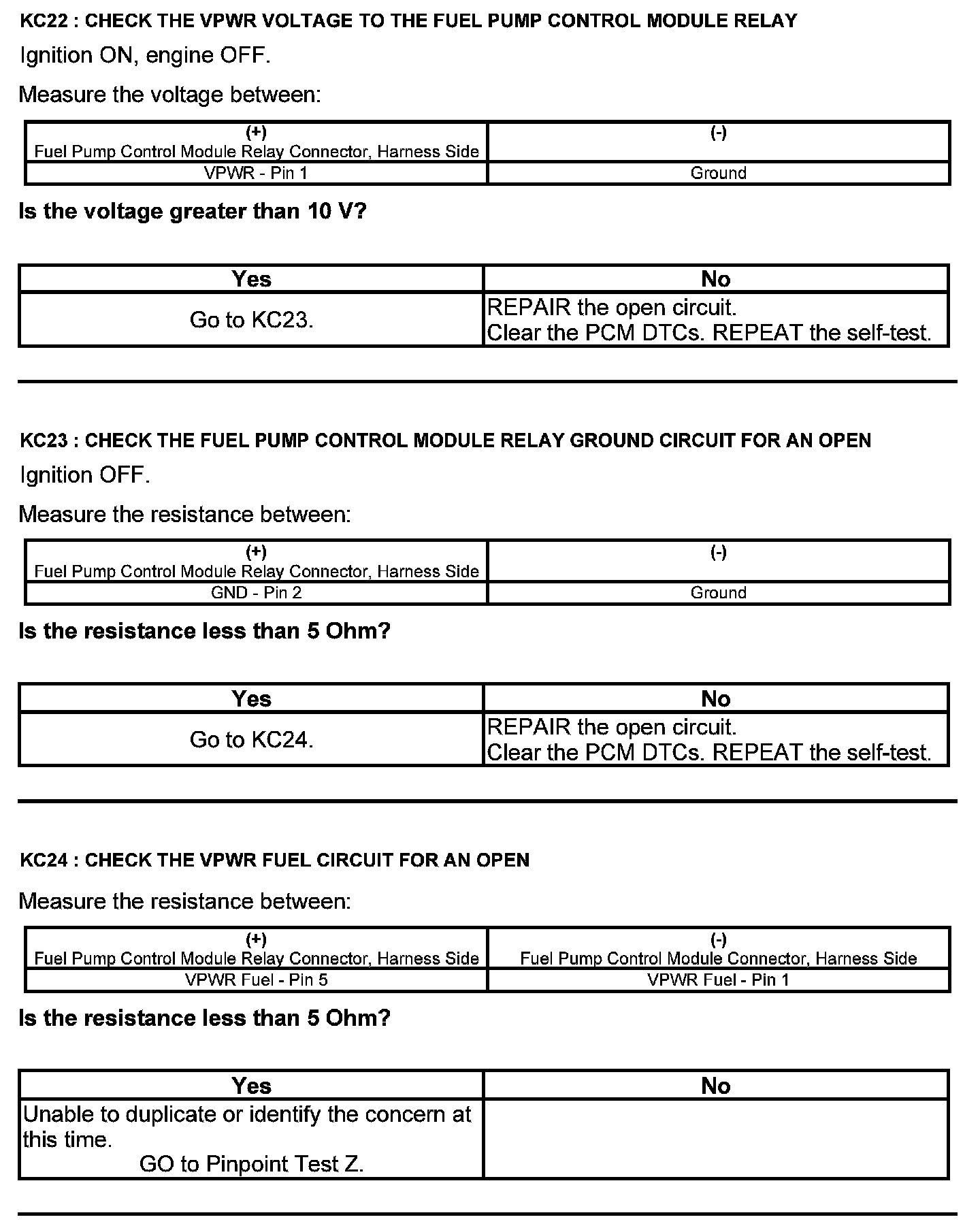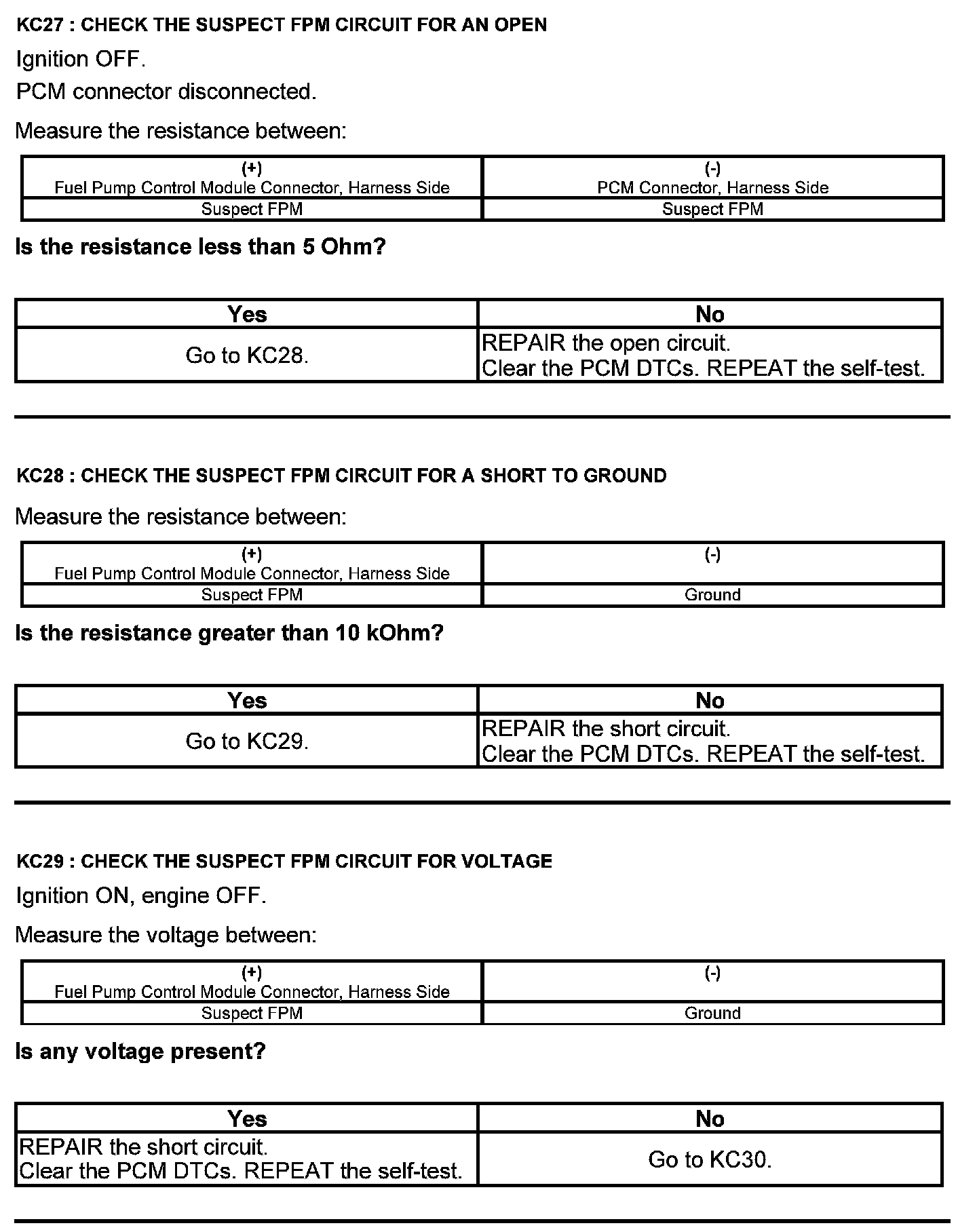 Test KC: Fuel Pump Control Module